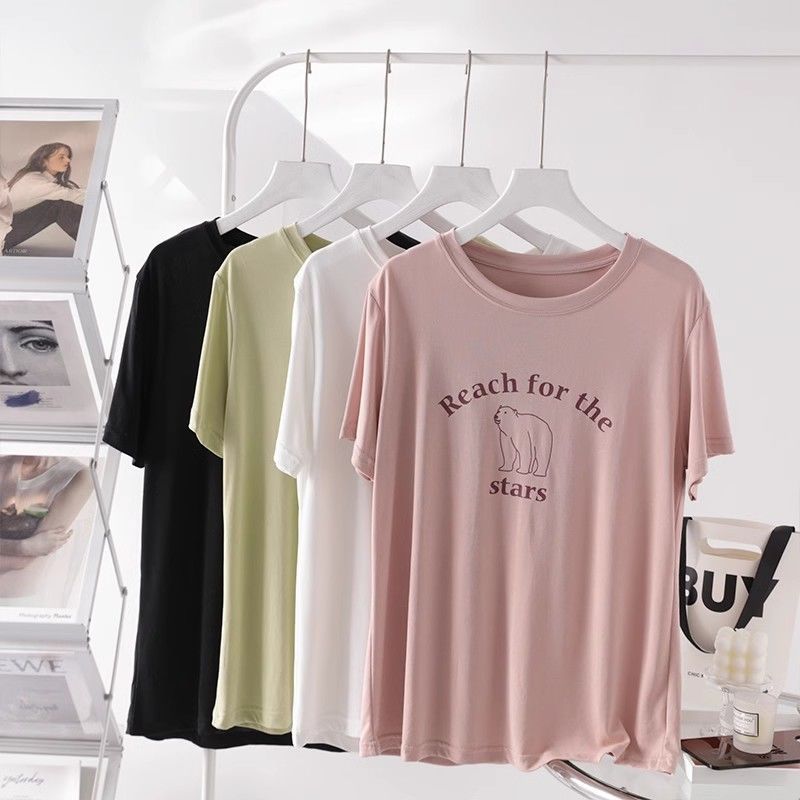 垂感显瘦莫代尔宽松T恤显白字母印花圆领薄款凉爽百搭短袖上衣女
