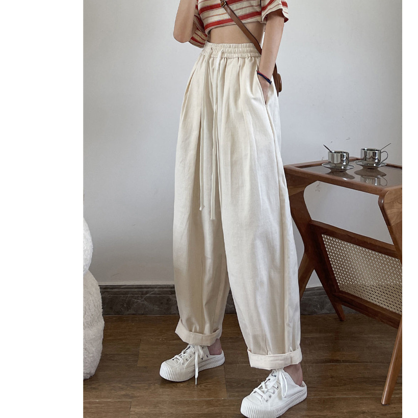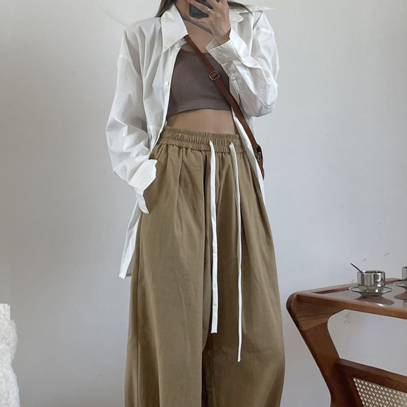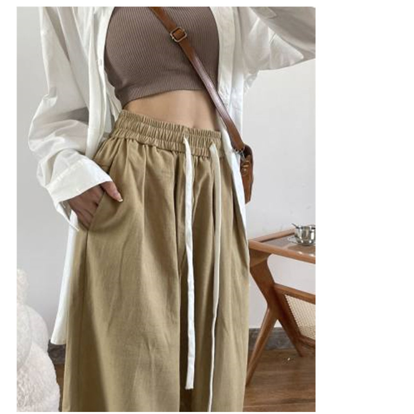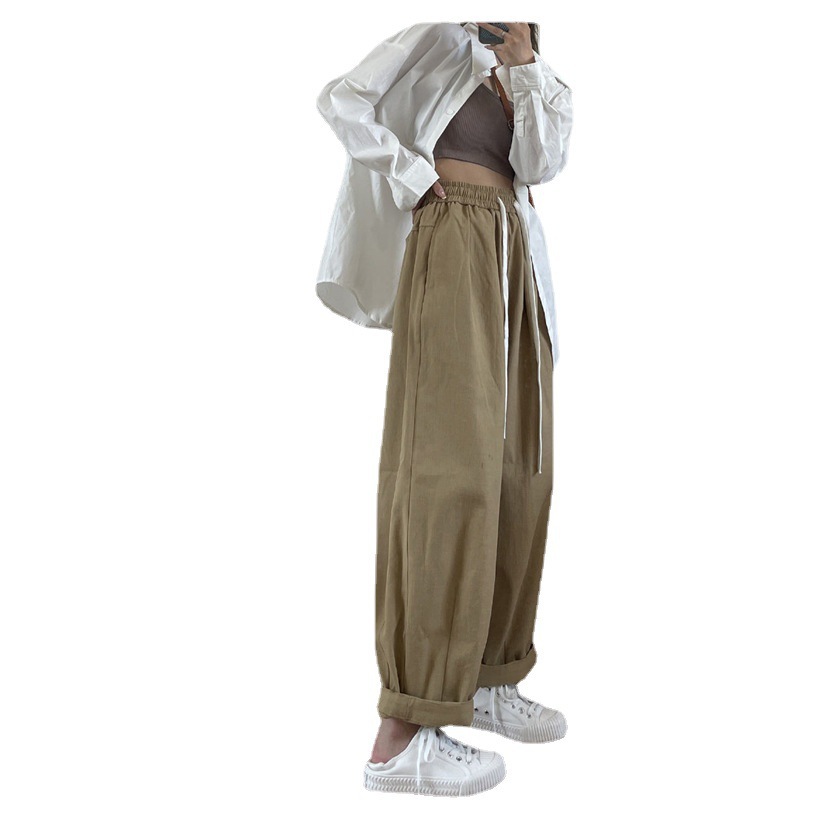 工装裤女高腰抽绳复古小个子慵懒风宽松休闲裤