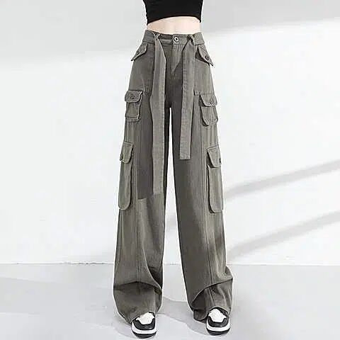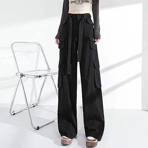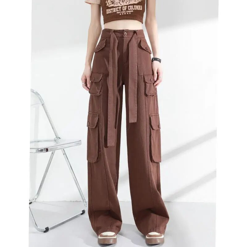 辣妹高腰牛仔裤女秋冬新款宽松设计感多口袋阔腿休闲工装裤潮