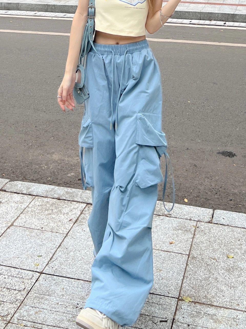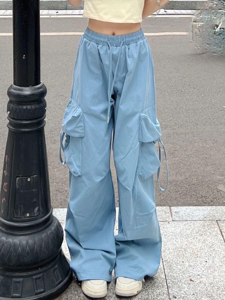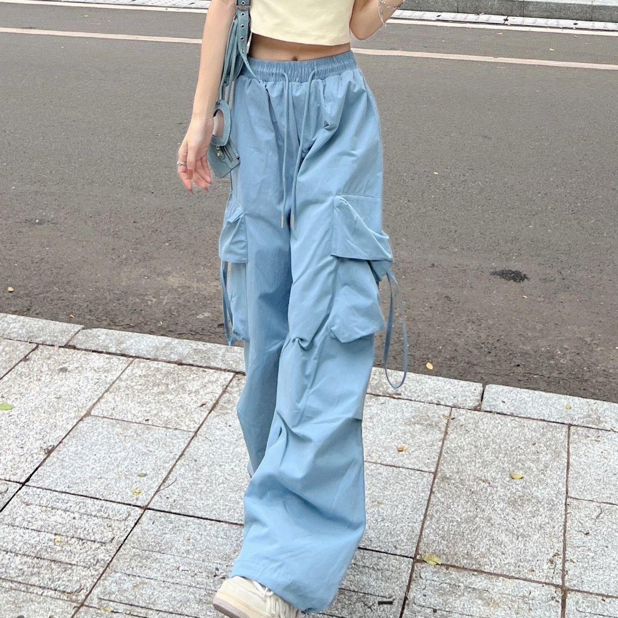 美式休闲裤女年夏季新款直筒垂坠感阔腿工装裤高腰显瘦长裤子