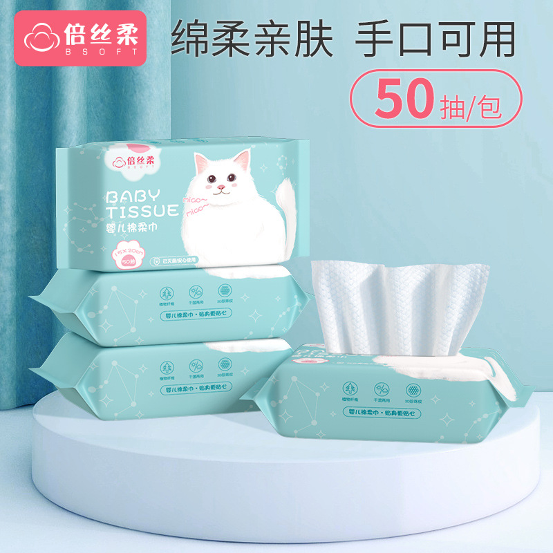 婴儿棉柔巾宝宝专用新生儿抽取式便携宝宝洗脸巾50抽婴幼儿毛巾