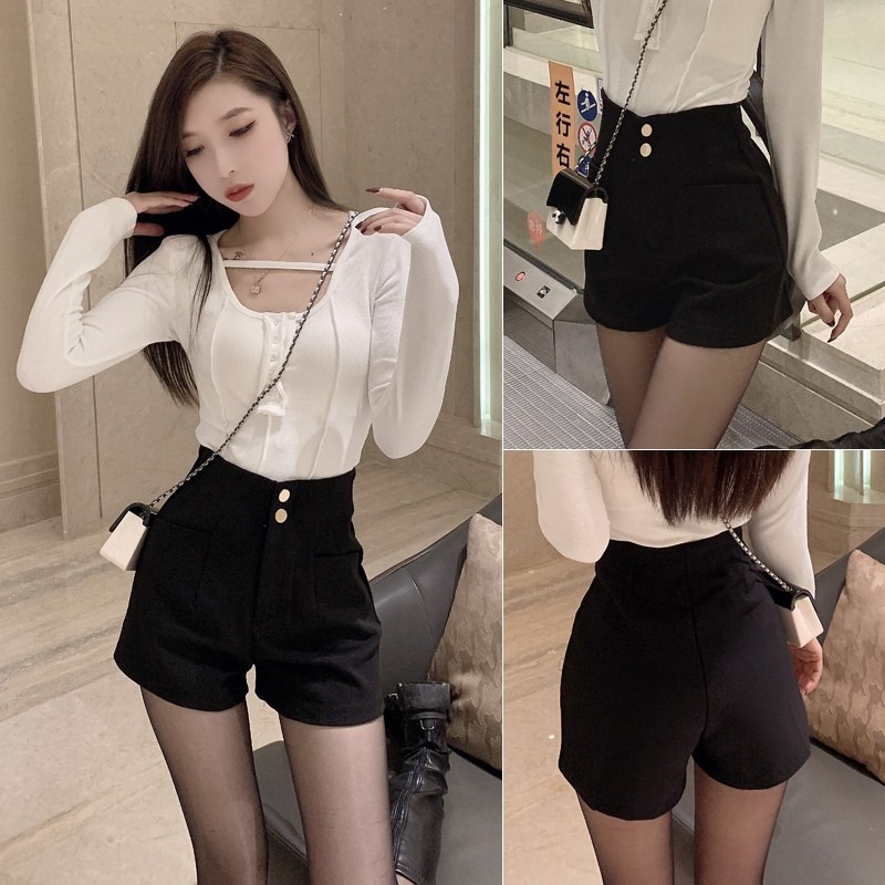新款春夏外穿弹力短裤女高腰黑色显瘦百搭A字西装外穿热裤潮