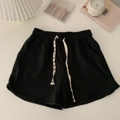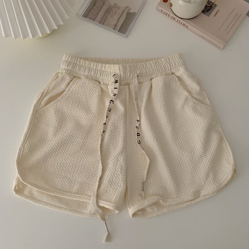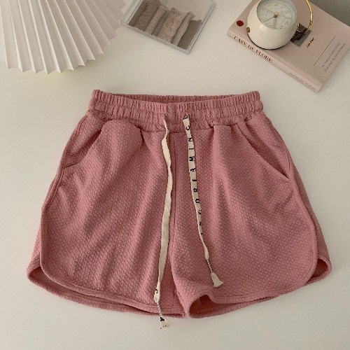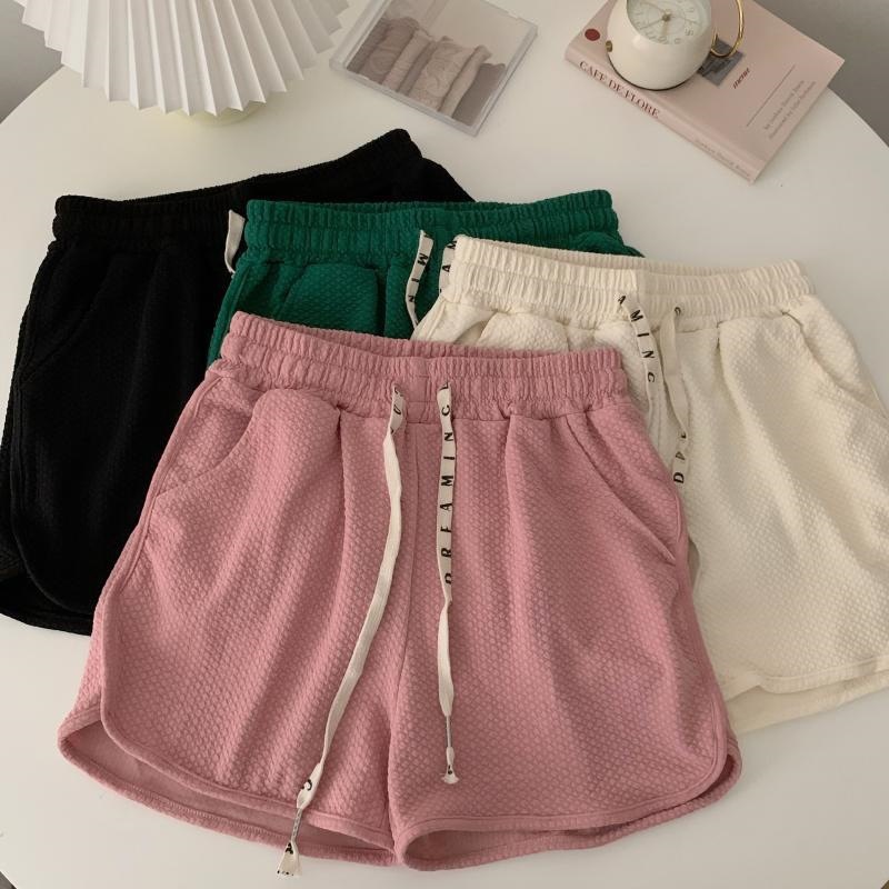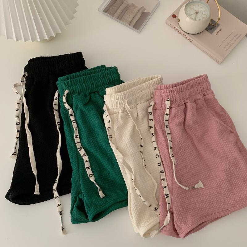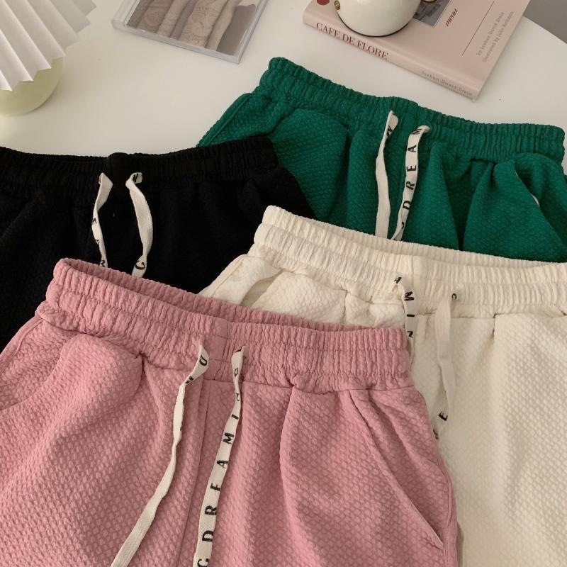 华夫格泡芙休闲短裤女夏季新款宽松热裤小个子抽绳运动裤子潮