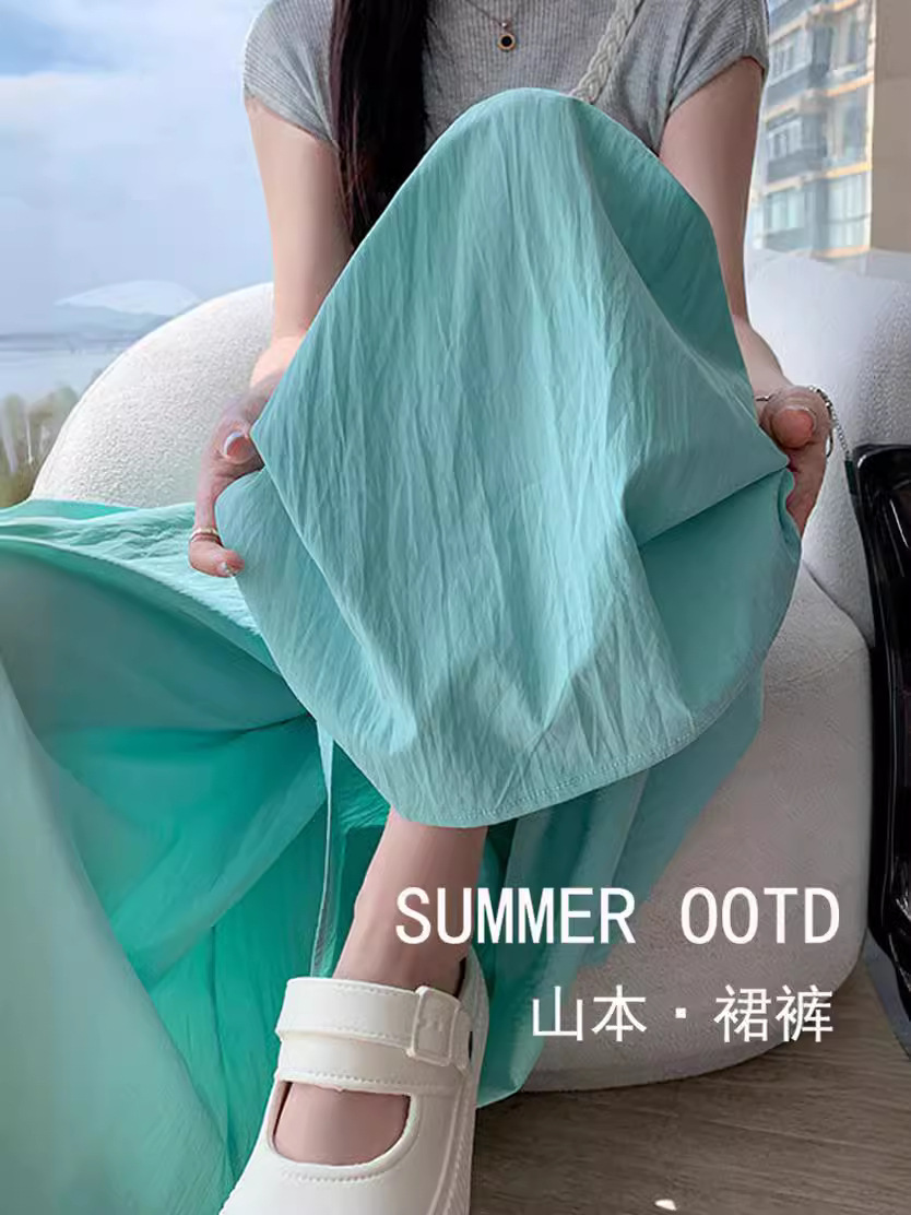 山本风裙裤女春夏新品学院风垂感高腰显瘦半身休闲长裙阔腿裤