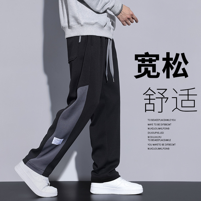 夏季薄款休闲裤子男生ins潮流拼接直筒长裤宽松阔腿运动卫裤男士