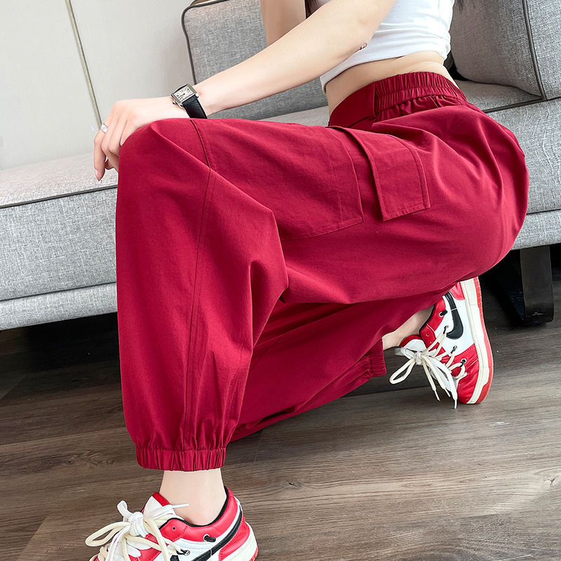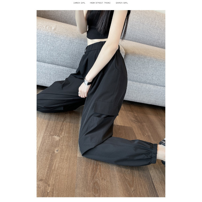 束脚工装裤夏季薄款新款高腰垂感透气速干裤美式哈伦运动裤