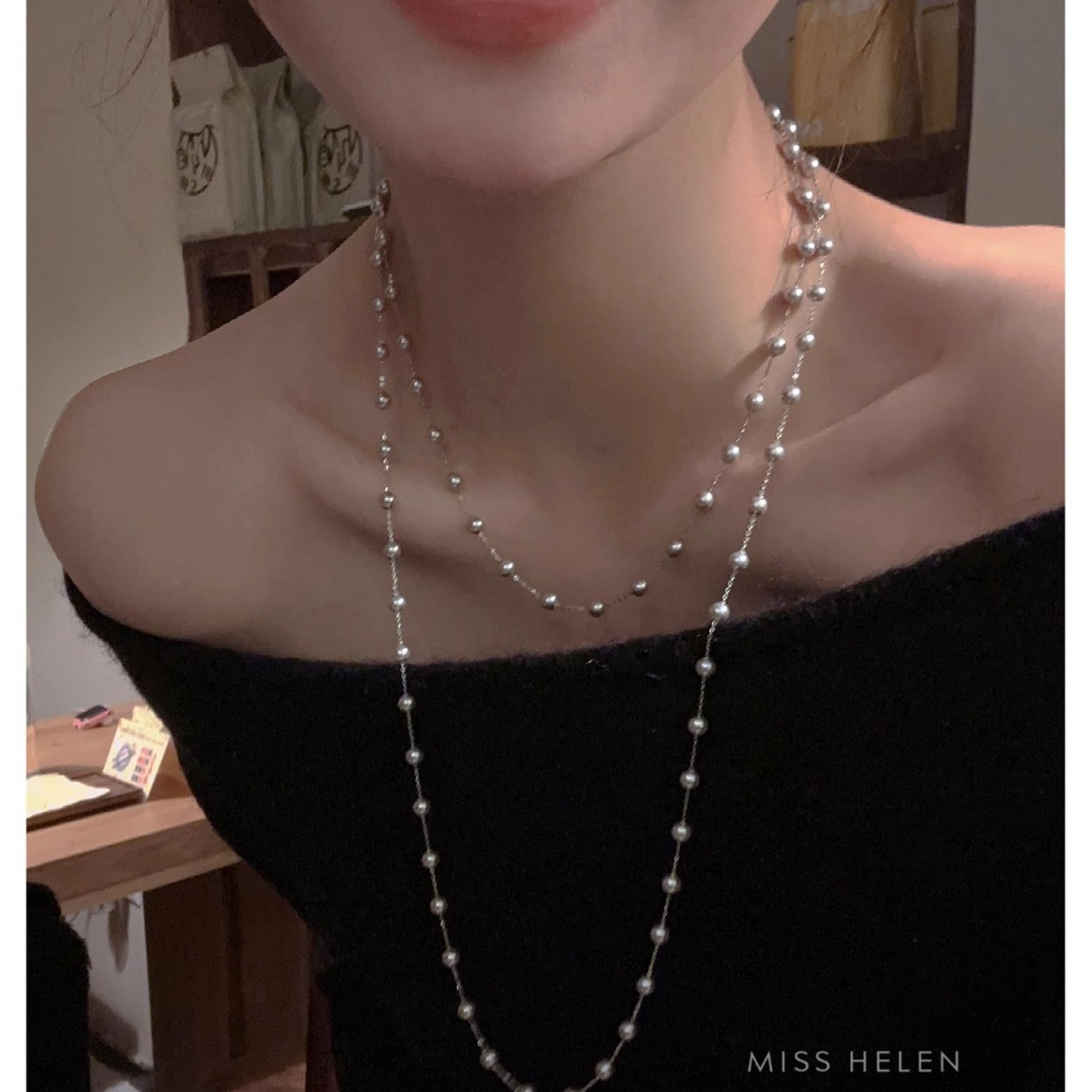 密版满天星高档水晶珍珠项链女毛衣链长款S925银锁骨链气质精致