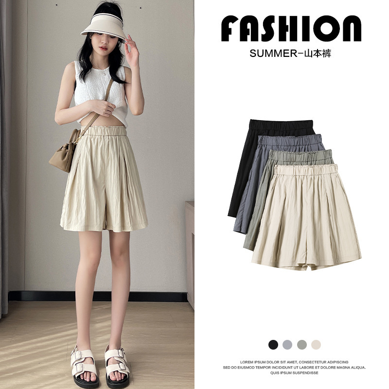 冰丝阔腿山本裤短裤女裤夏季薄款高腰直筒宽松运动休闲五分裤