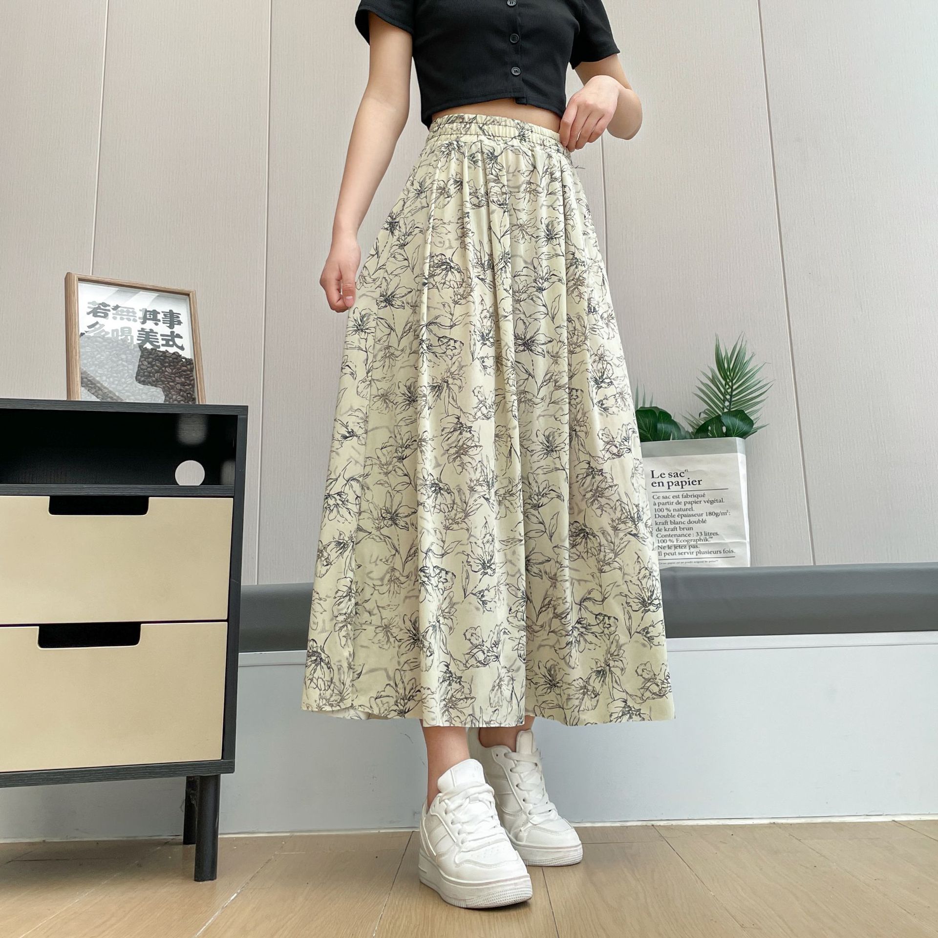 夏季国风新中式半身碎花裙甜美印花裙高弹女士大摆裙