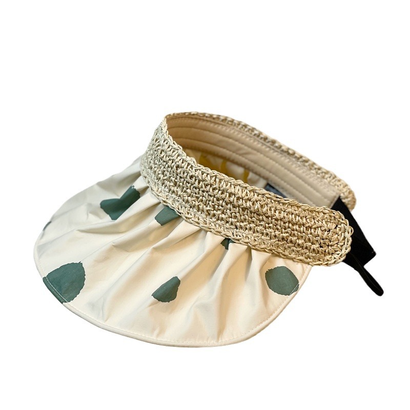 波点遮阳帽子女韩版百搭小清新防晒空顶帽夏季黑胶防紫外线沙滩帽