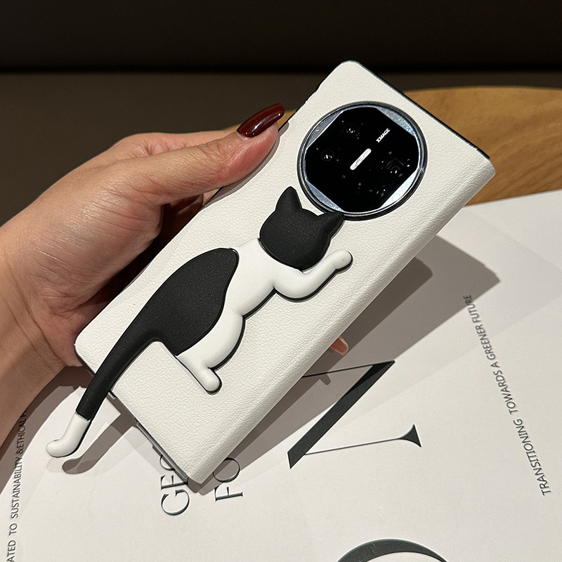 猫咪支架华为MateX6手机壳折叠屏卡通皮质mate x5新款可爱小清新简约x3铰链全包XT小清新男女保护套防摔