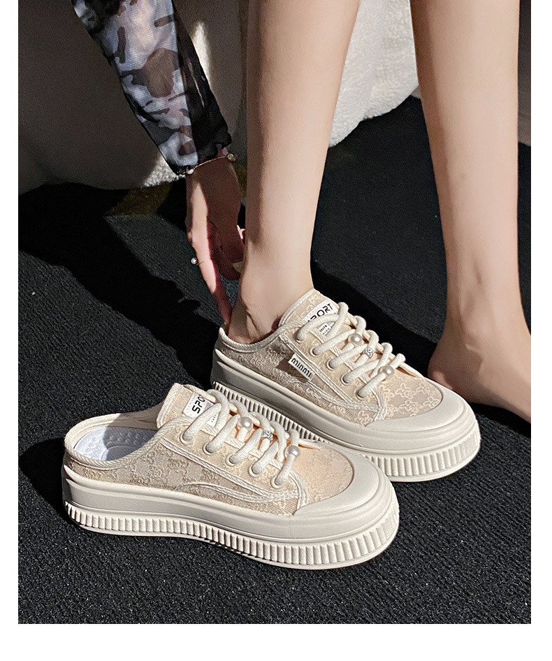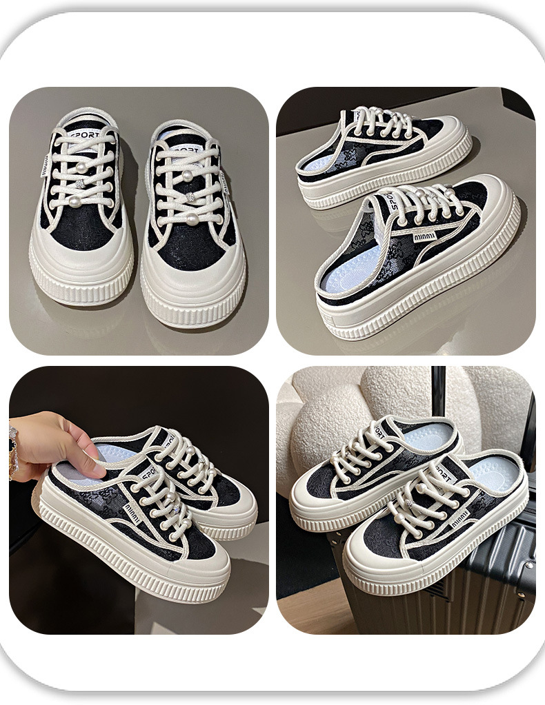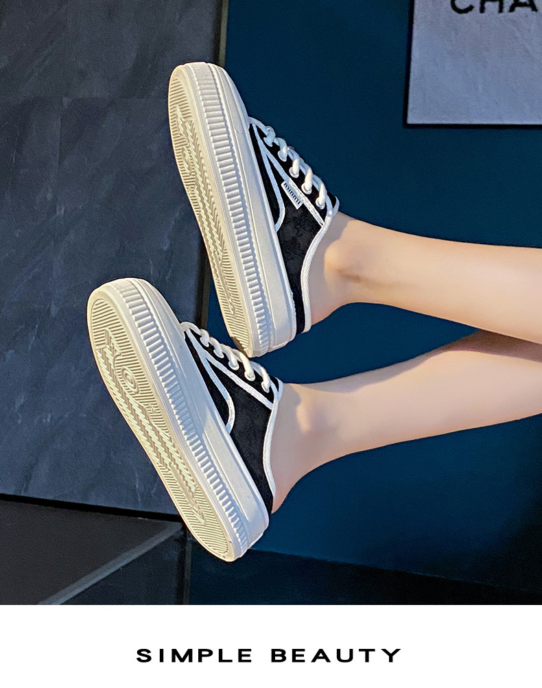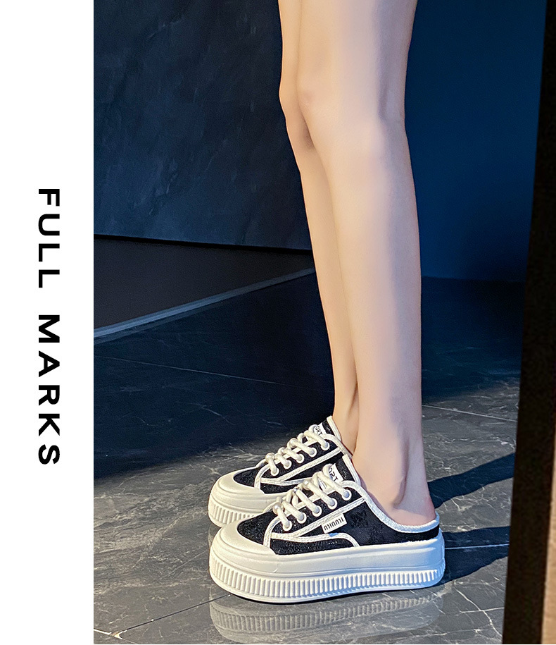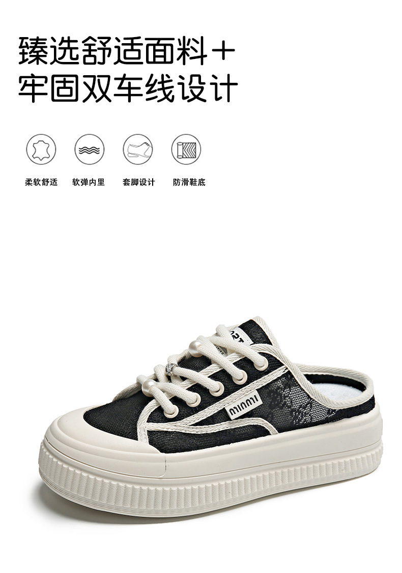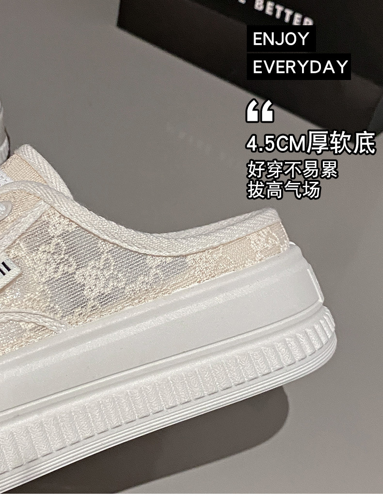 厚底网纱透气一脚蹬包头半拖鞋女夏季新款学生百搭休闲板鞋子