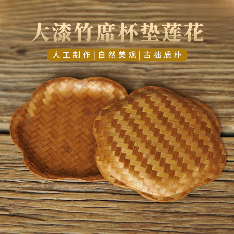 复古大漆竹编杯垫茶道茶托茶竹席隔热垫