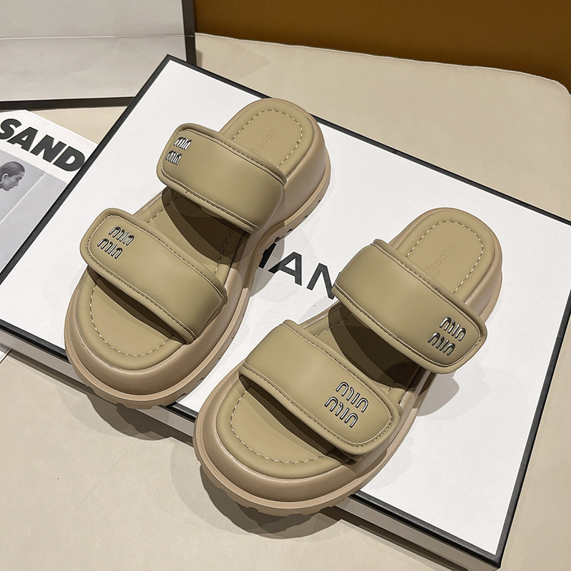 厚底增高魔术贴一字拖鞋女外穿年夏季新款时尚百搭休闲沙滩鞋