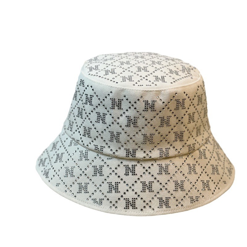 春季韩版N水钻字母渔夫帽子女大檐加深遮脸盆帽显脸小轻奢 夏天帽