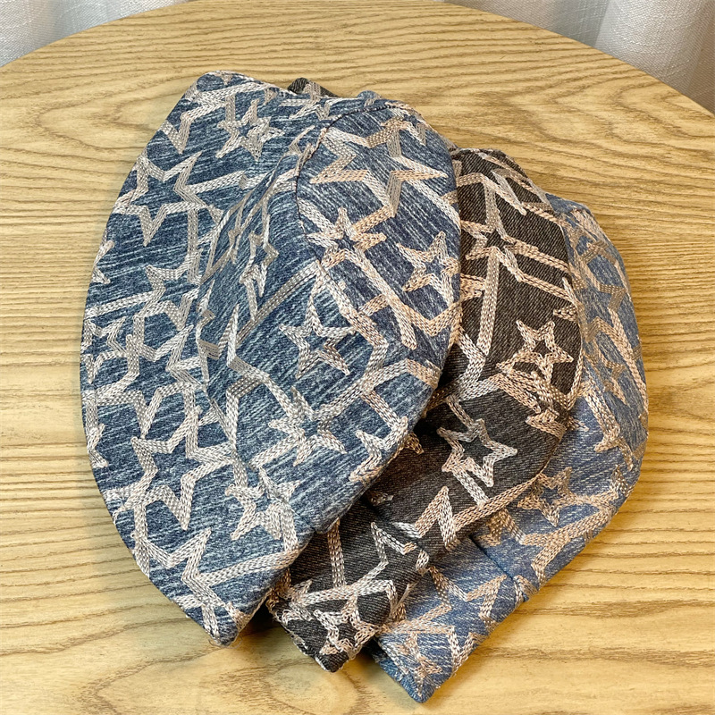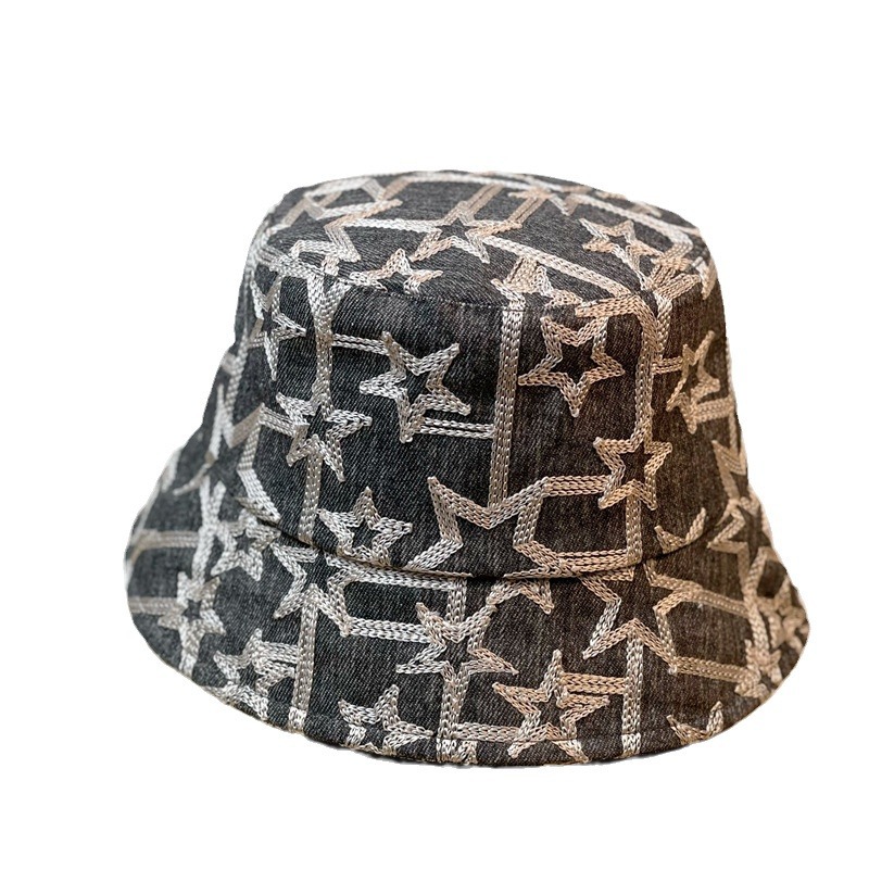 新款时尚牛仔刺绣渔夫帽女春秋韩版时尚百搭盆帽显脸小遮阳水桶帽