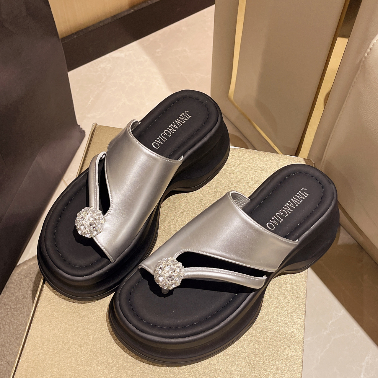 厚底水钻套趾一字拖鞋女外穿年夏季新款百搭仙女风沙滩凉拖鞋