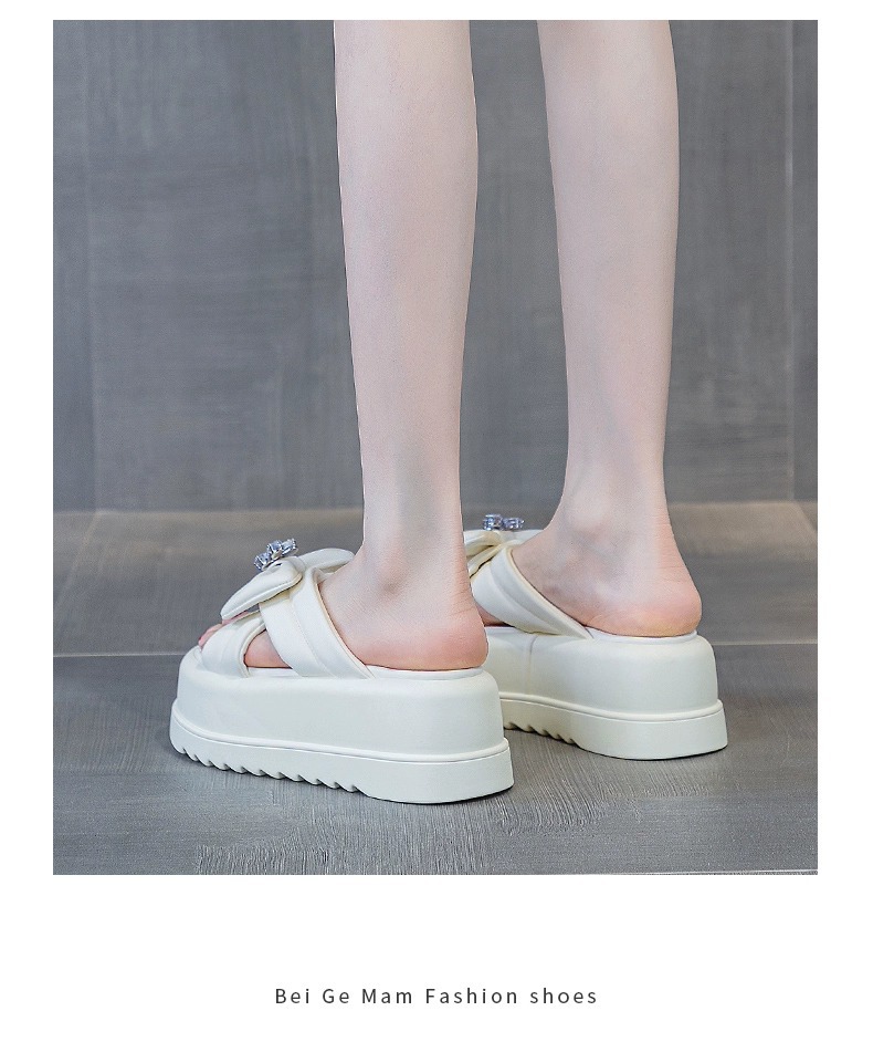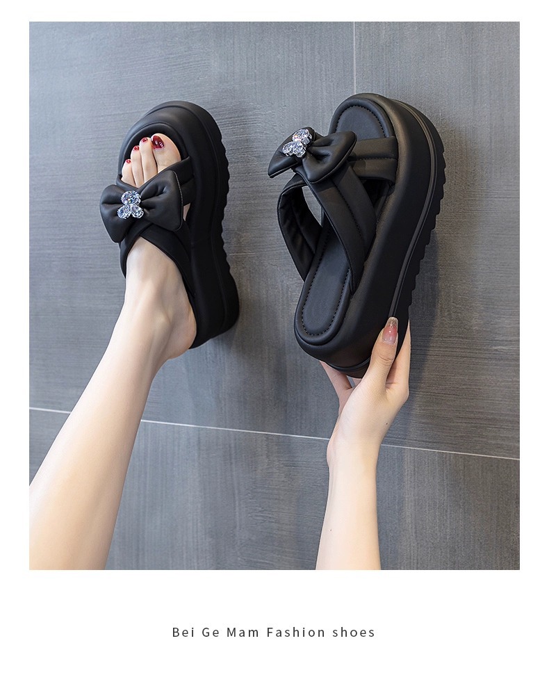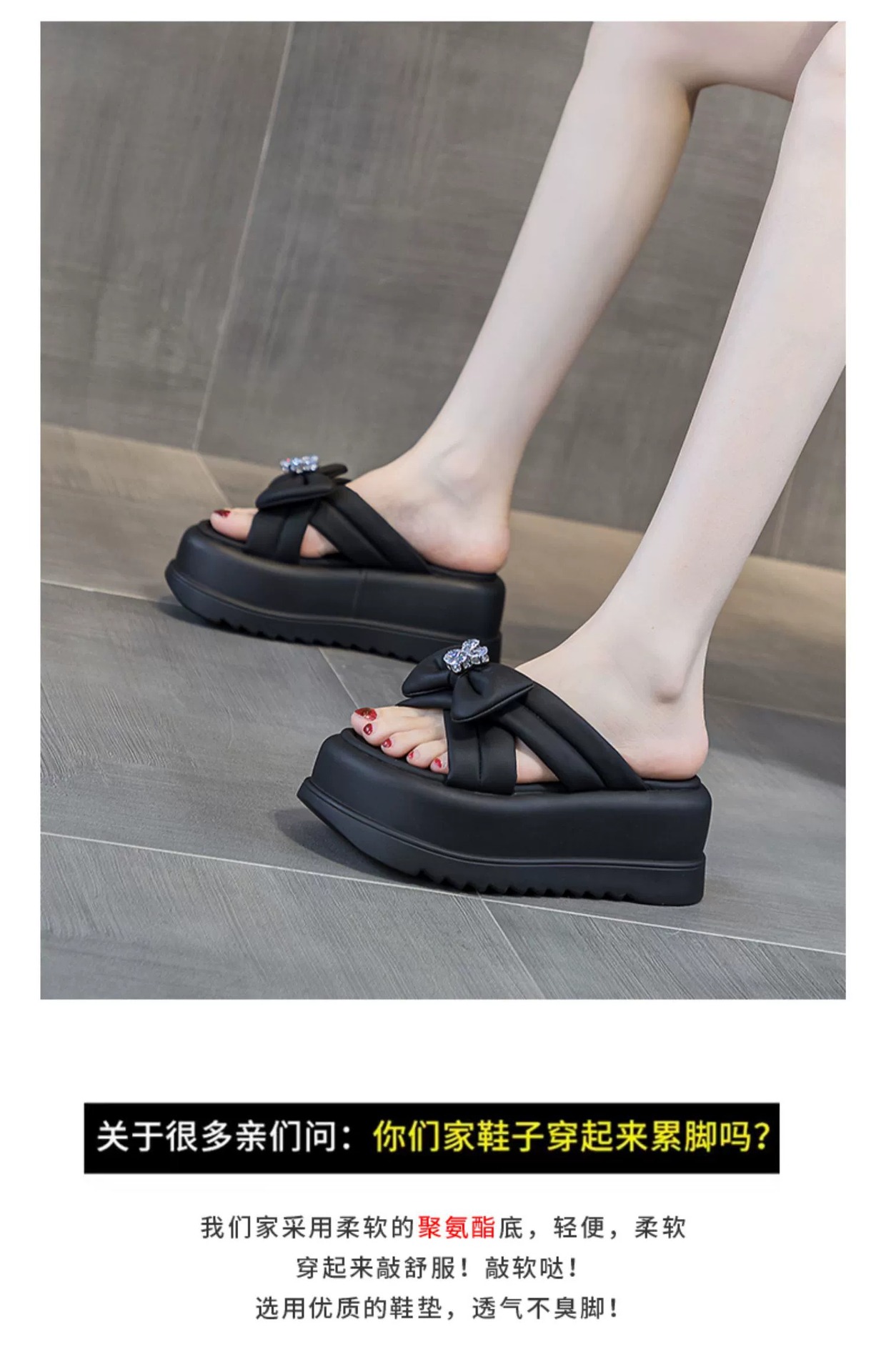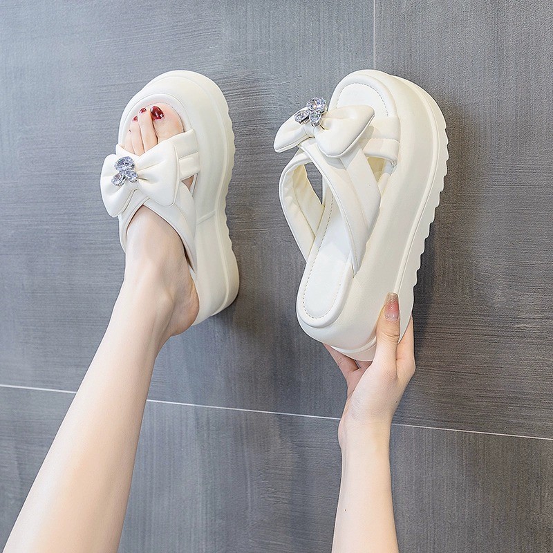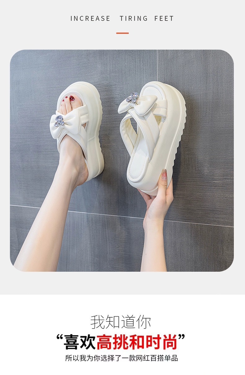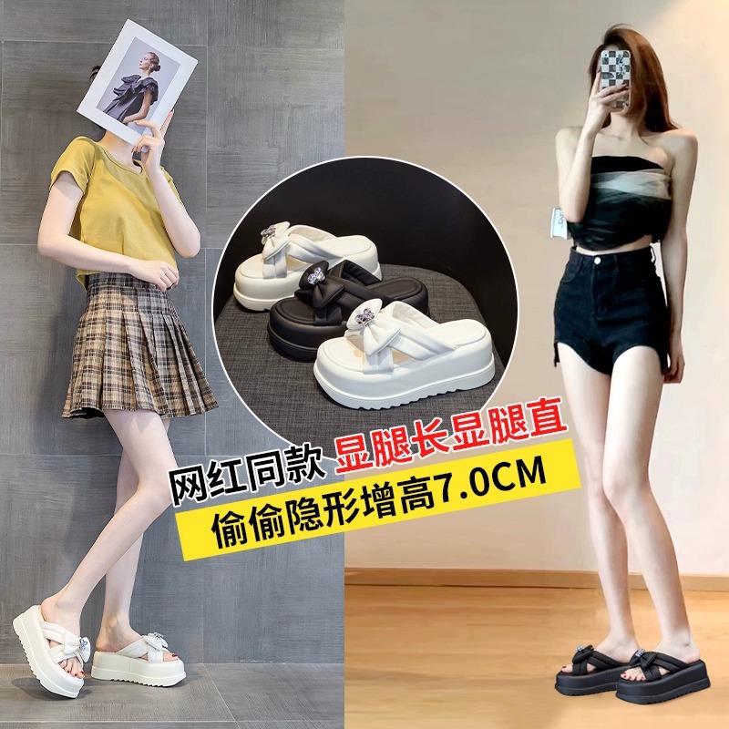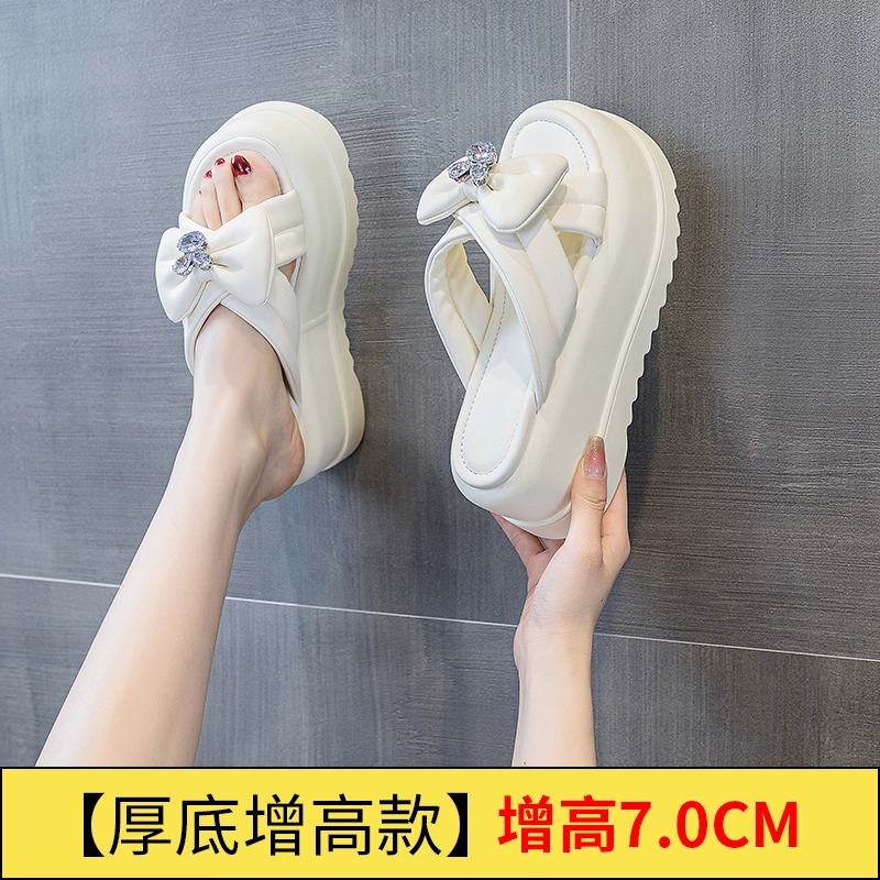 厚底增高蝴蝶结一字拖鞋女外穿夏季新款百搭配裙子沙滩凉拖鞋