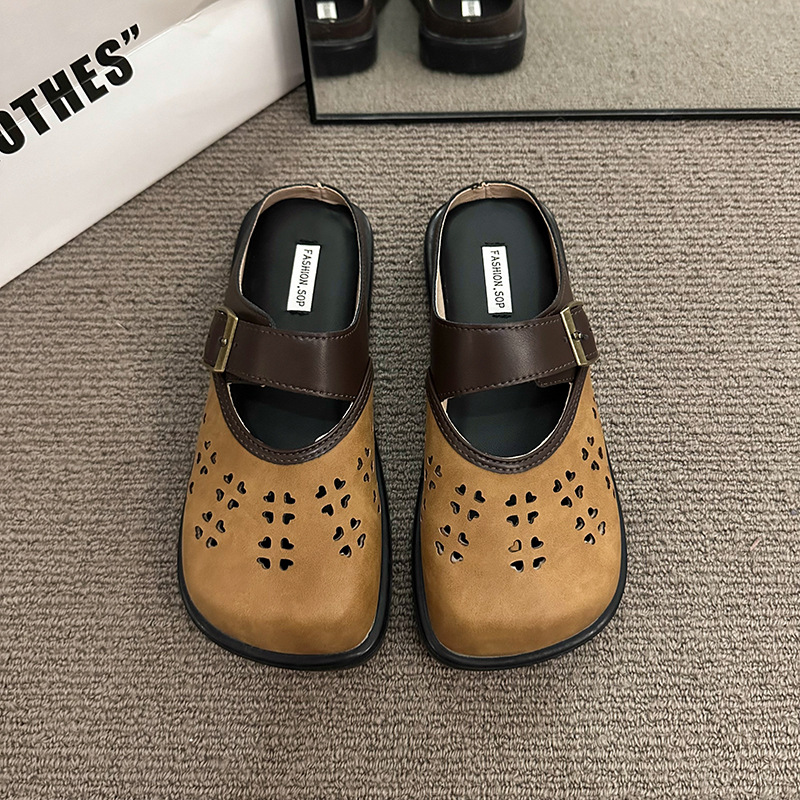 厚底镂空勃肯鞋包头半拖鞋女外穿夏季新款法式百搭休闲凉拖鞋
