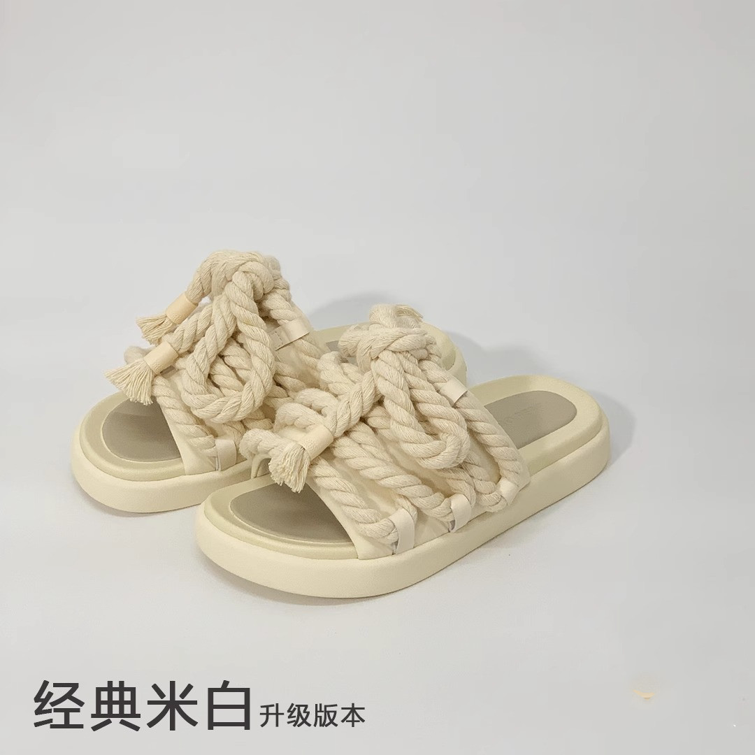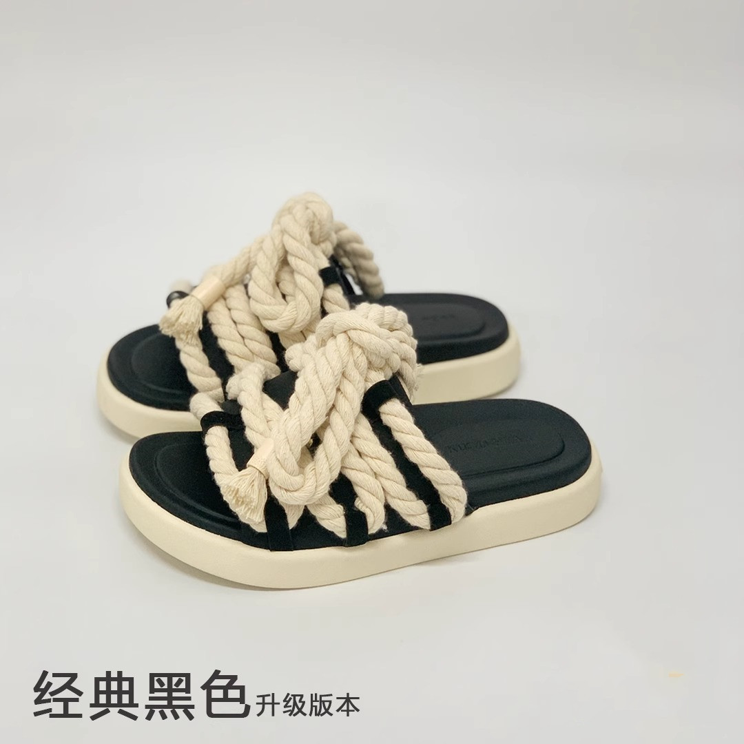 厚底麻绳编织拖鞋女外穿年夏季新款设计感百搭休闲沙滩凉拖鞋