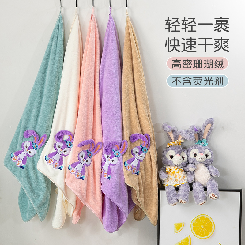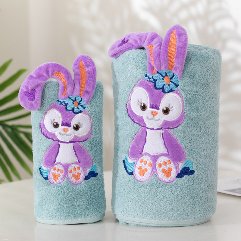 星星兔多功能浴巾毛巾两件套宝宝儿童浴袍卡通沙滩巾居家午休毯子