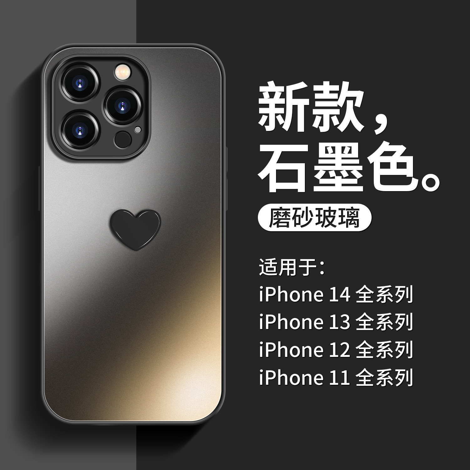 适用于苹果14Pro手机壳新款玻璃果冻爱心iPhone13简约潮牌12小清
