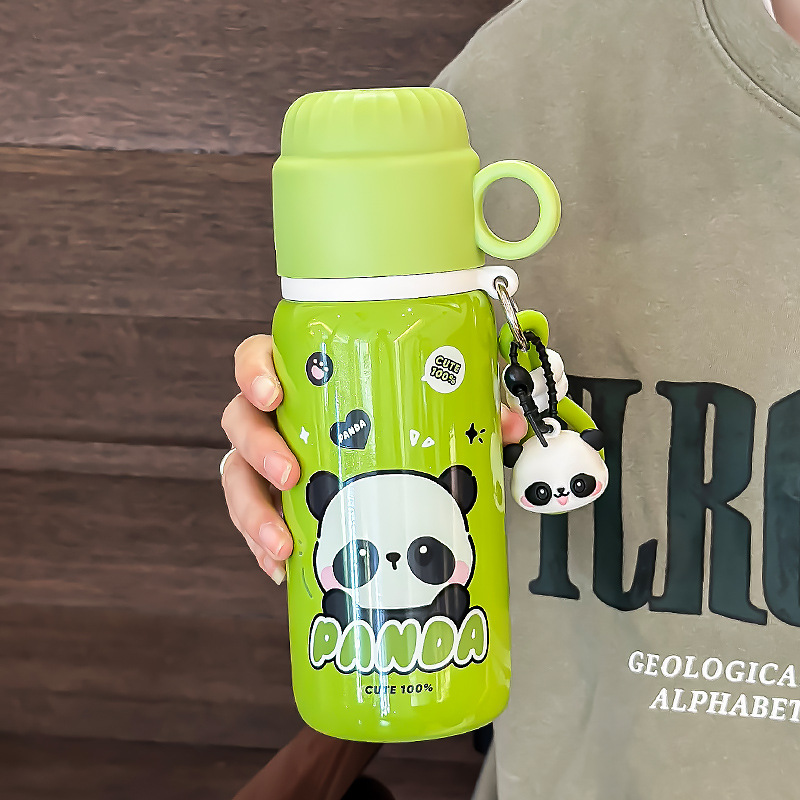 保温杯女生高颜值可爱带盖熊猫水杯新款学生上学专用便携杯子