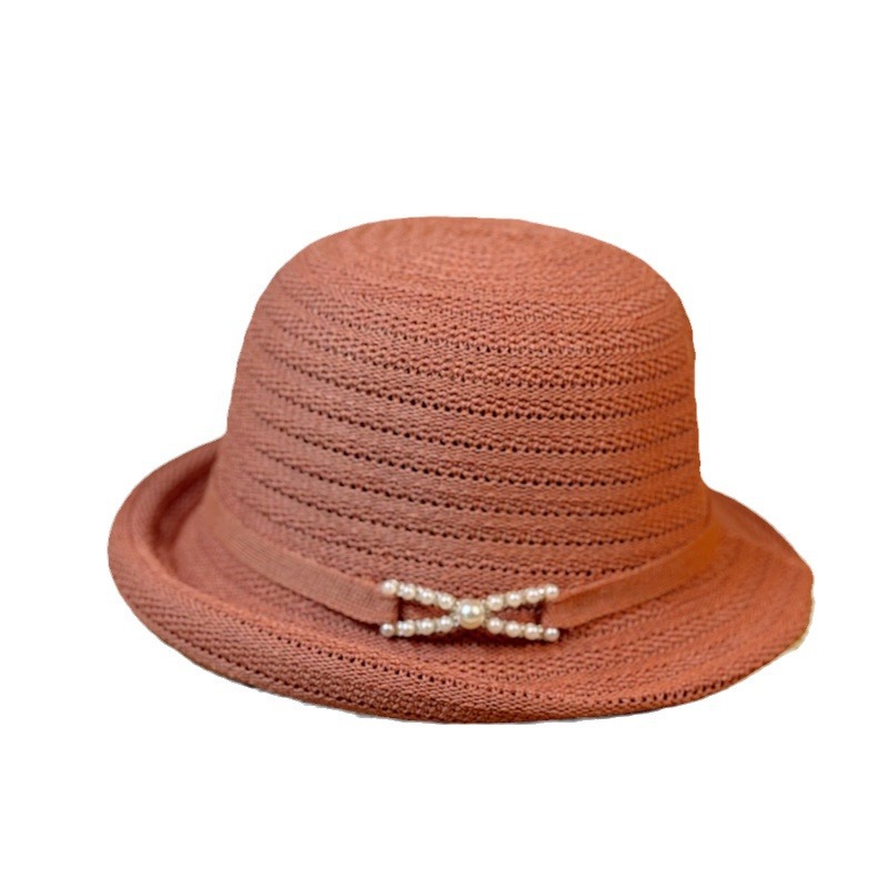卷边新款珍珠礼帽女春夏气质渔夫帽出游防晒遮阳帽子薄款透气盆帽