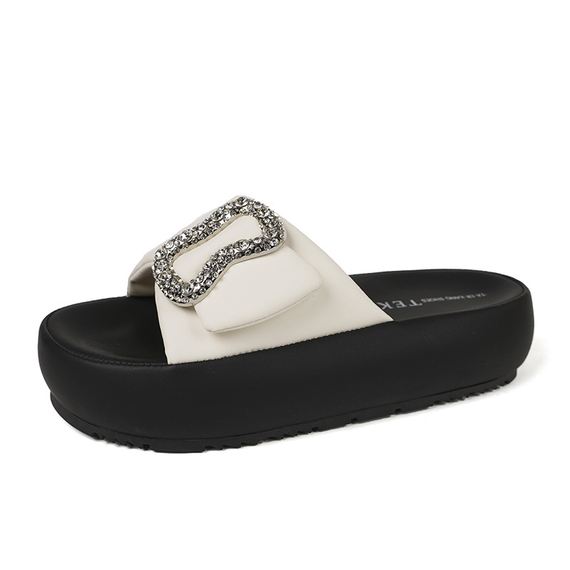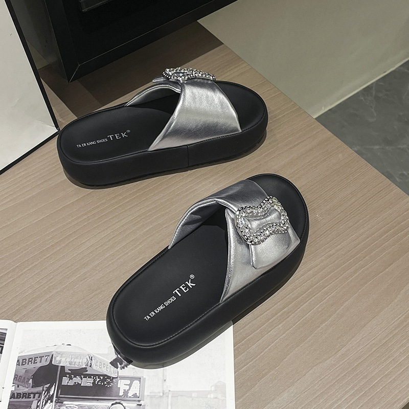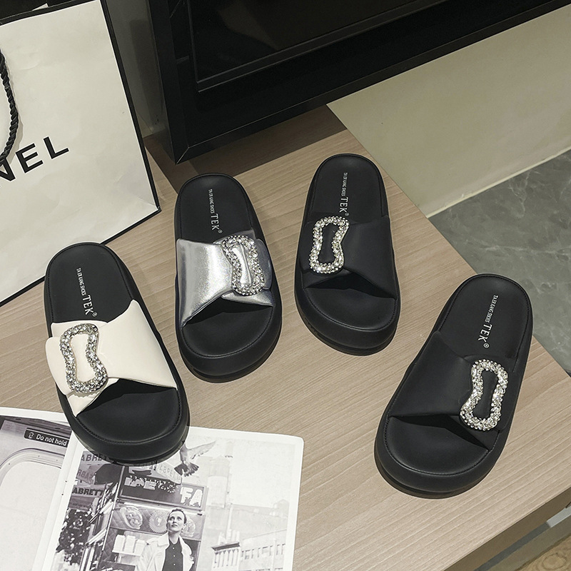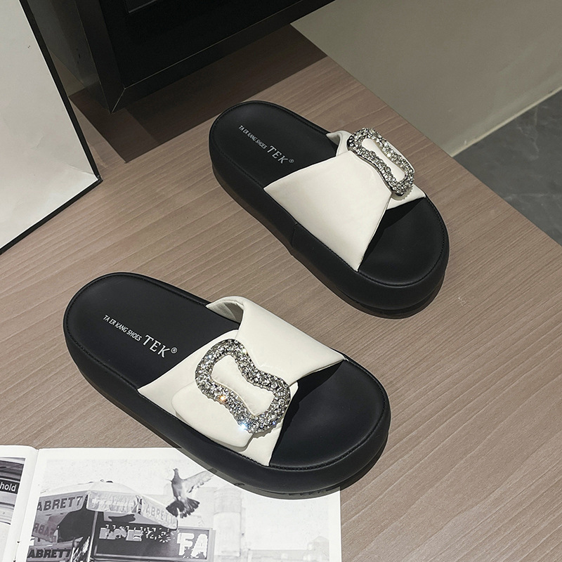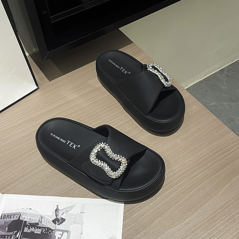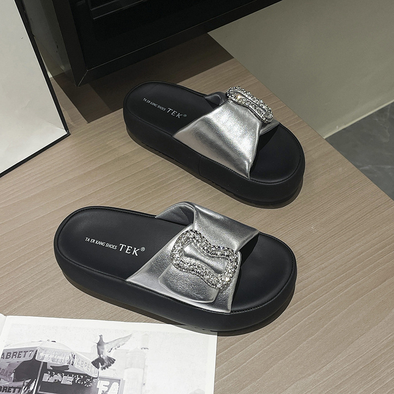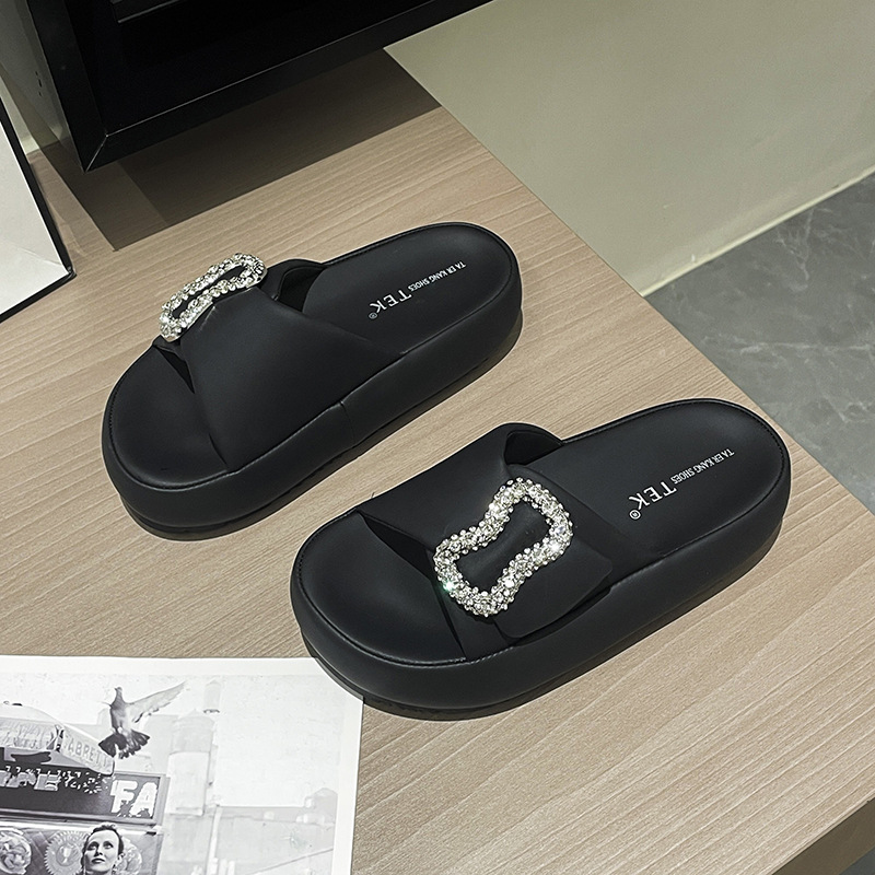 松糕厚底拖鞋女夏季外穿年新款百搭高级感水钻沙滩一字凉拖鞋