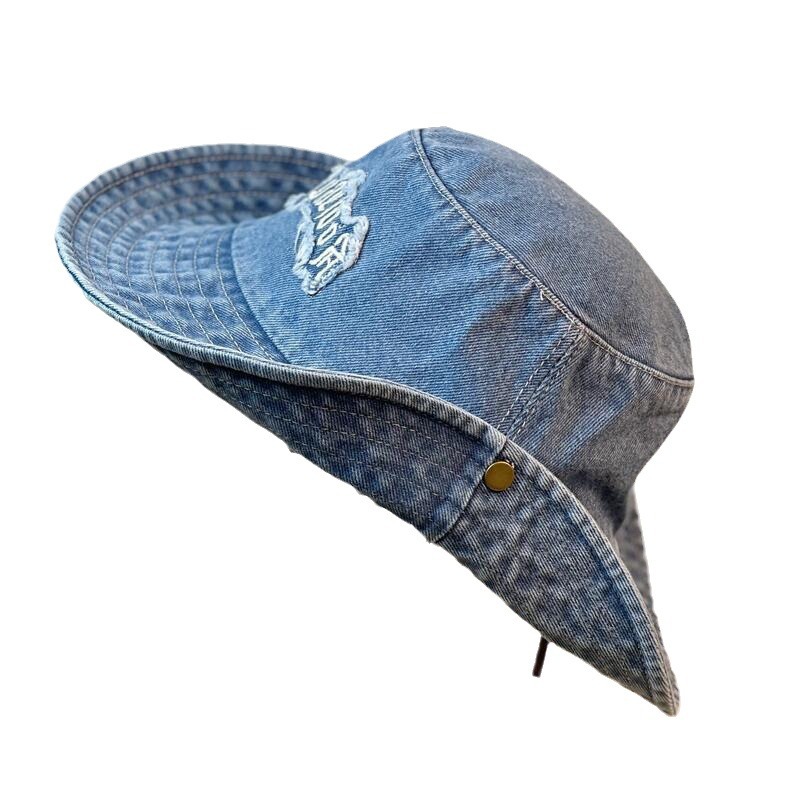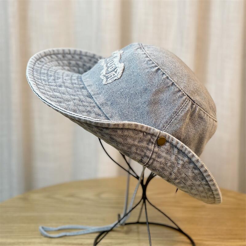 新款西部牛仔帽子女夏季复古水洗抽绳渔夫帽户外遮阳帽登山太阳帽