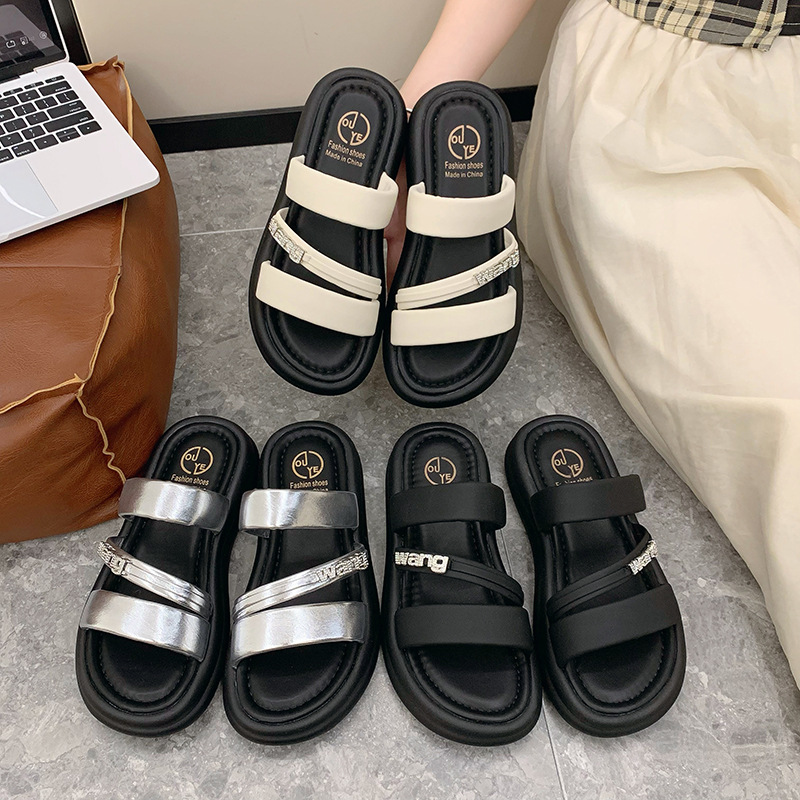 松糕厚底一字拖鞋女外穿年夏季新款百搭仙女风休闲沙滩凉拖鞋