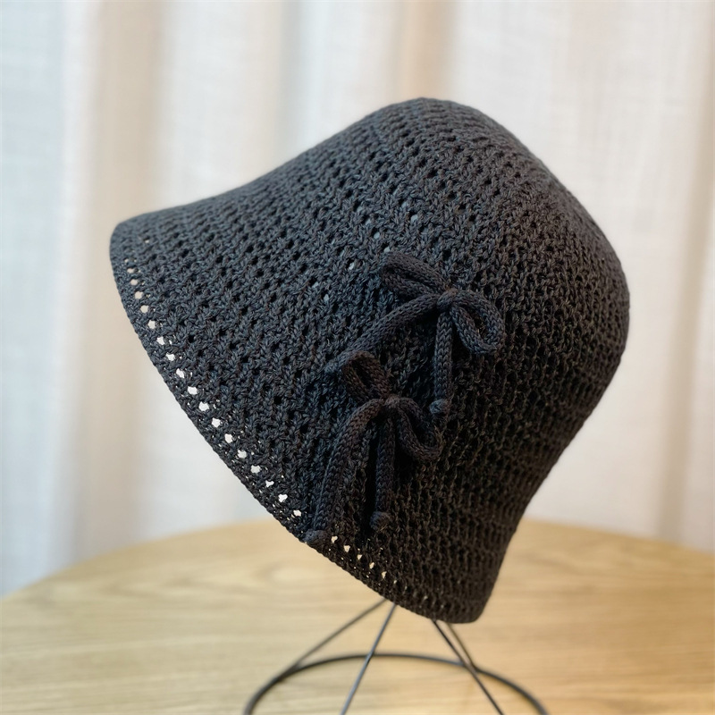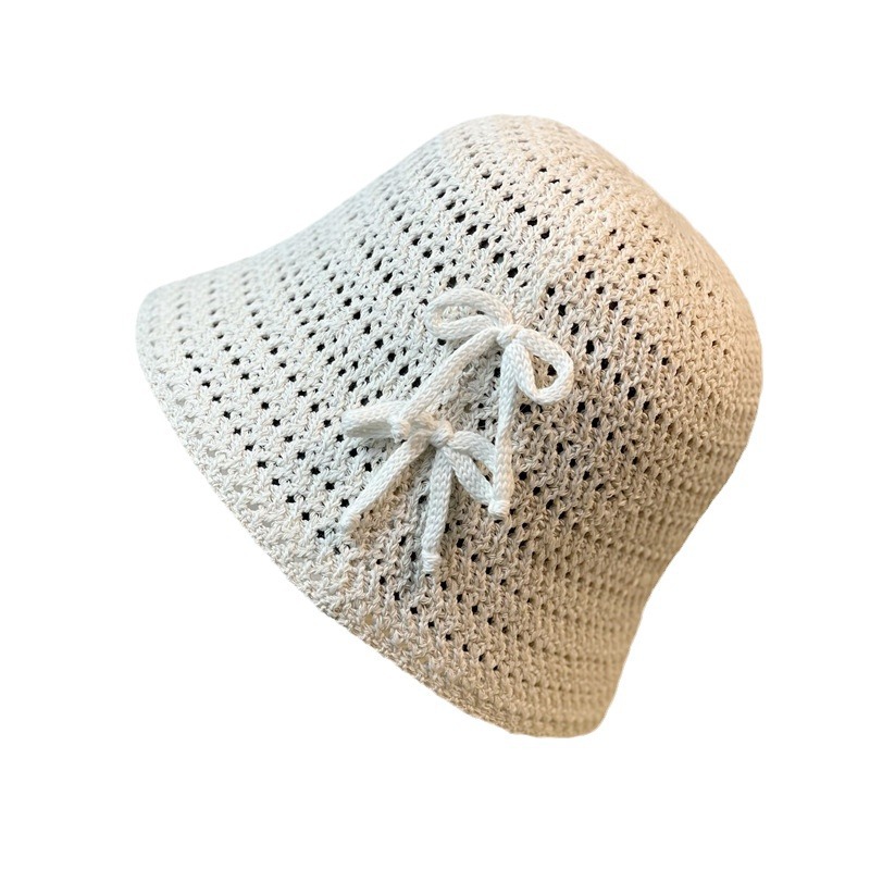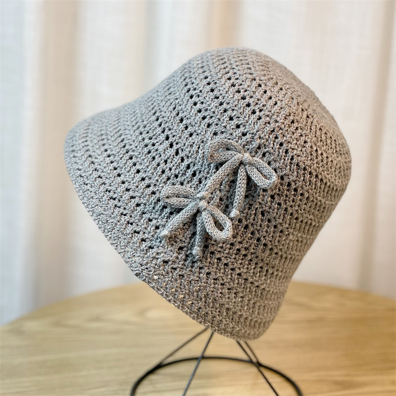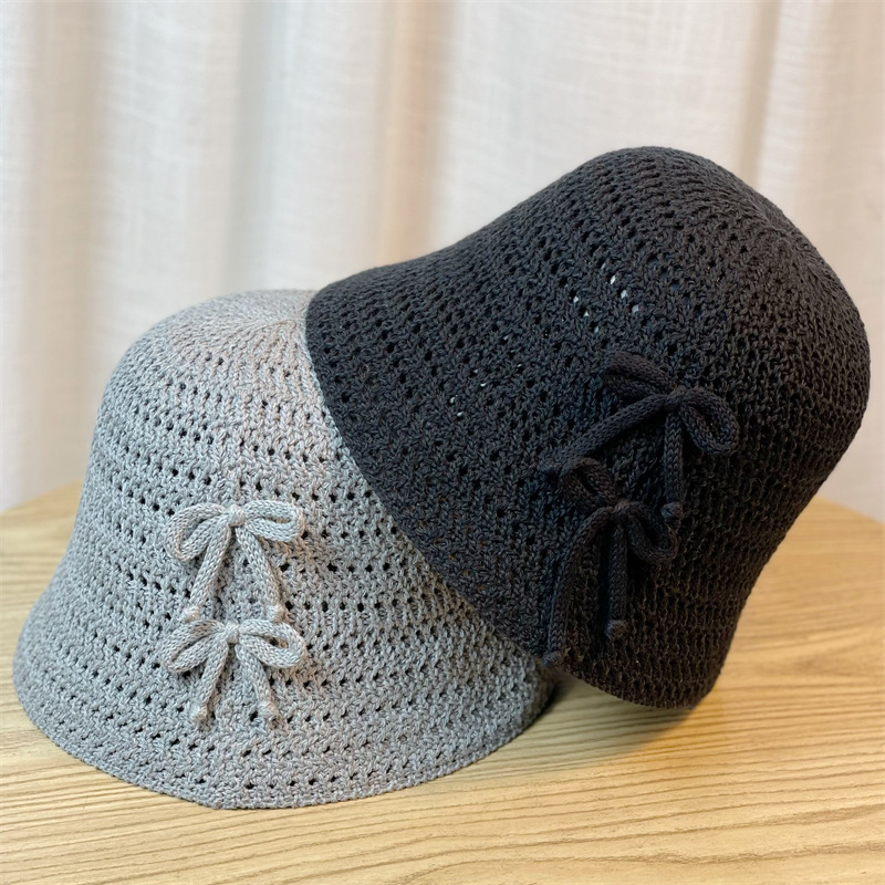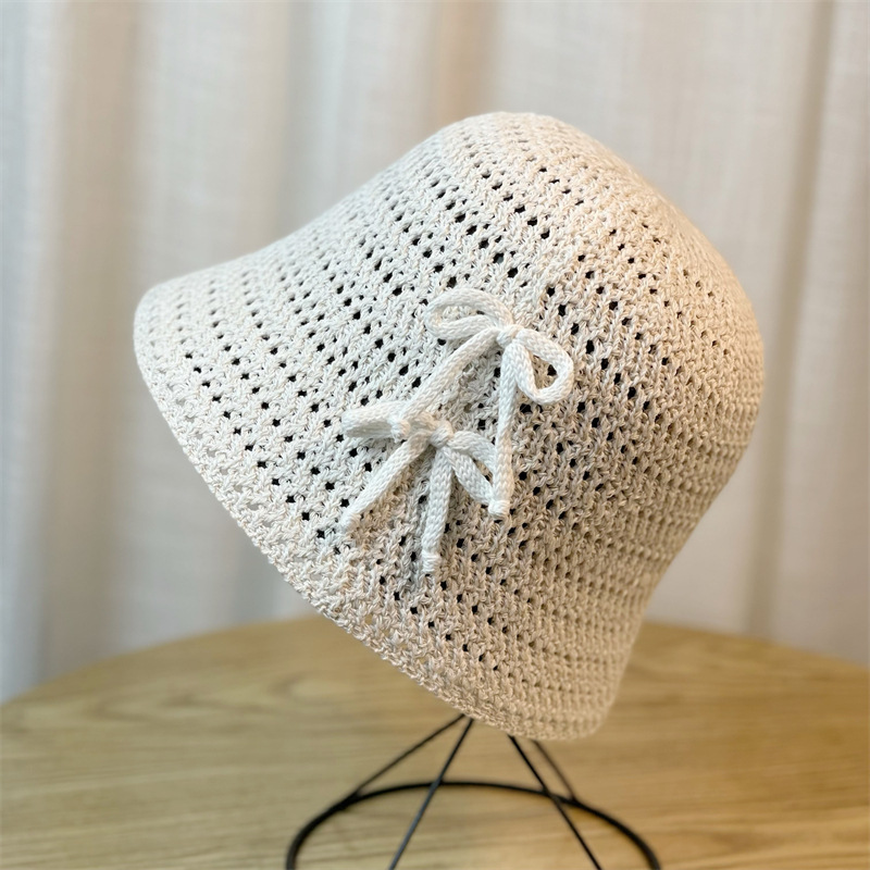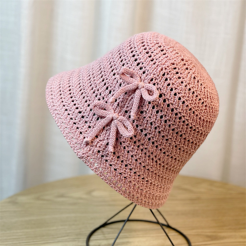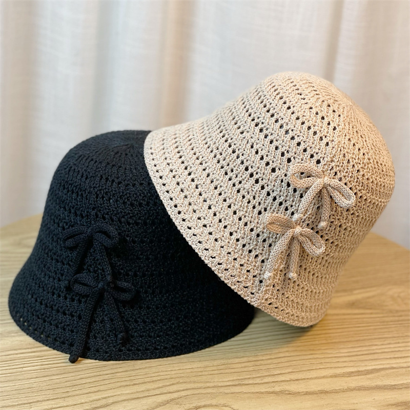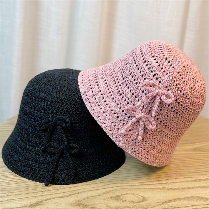 新款韩版ins春夏季甜美可爱蝴蝶结针织盆帽女遮阳渔夫帽子显脸小