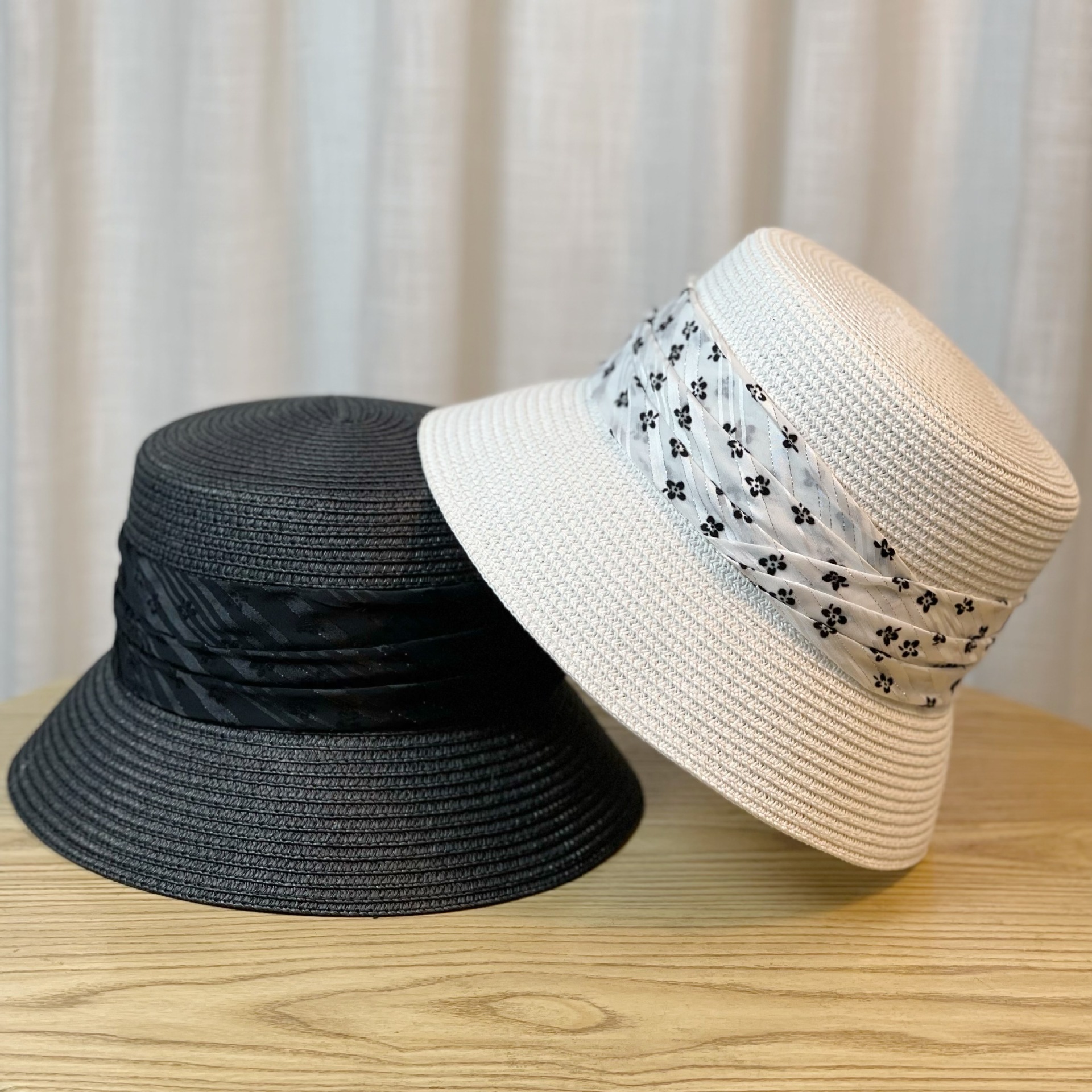 草帽女夏季新款平檐遮阳帽百搭复古防晒太阳帽平顶帽百搭沙滩凉帽