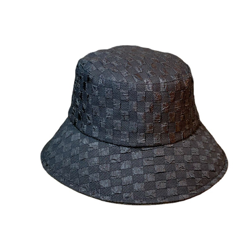 韩版网红气泡方格渔夫帽子女夏季防晒布帽纯色优雅太阳帽潮时装帽