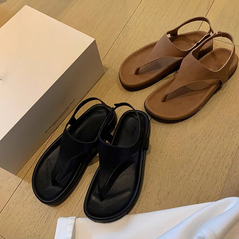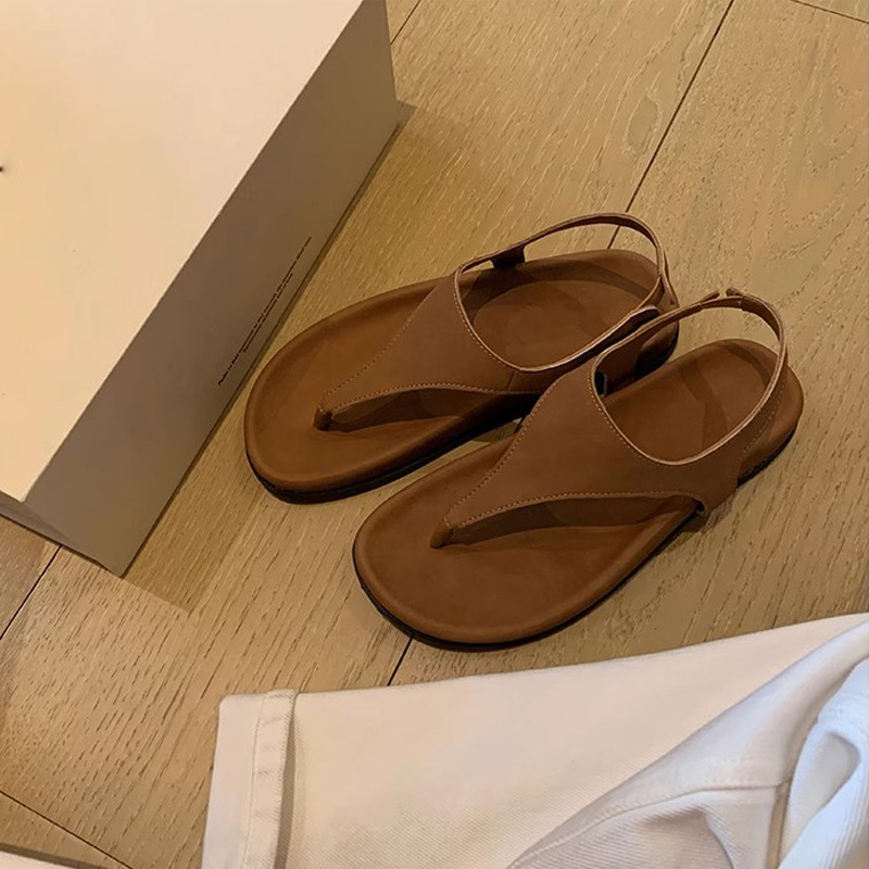 简约人字复古夹趾度假平底小众罗马风凉鞋