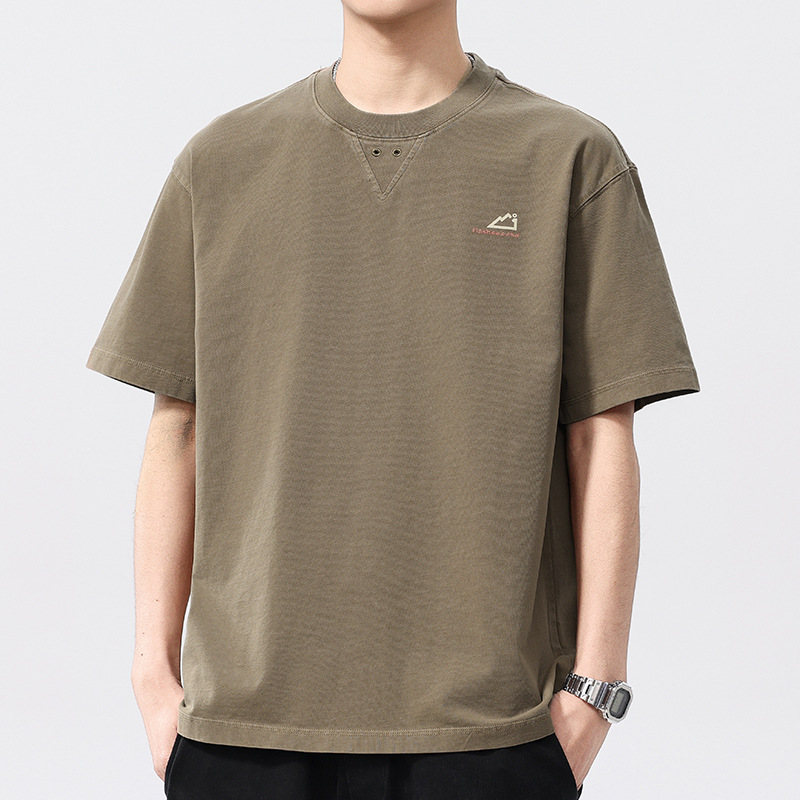 日系复古纯棉印花短袖T恤男士2025夏季新款水洗做旧宽松大码体恤