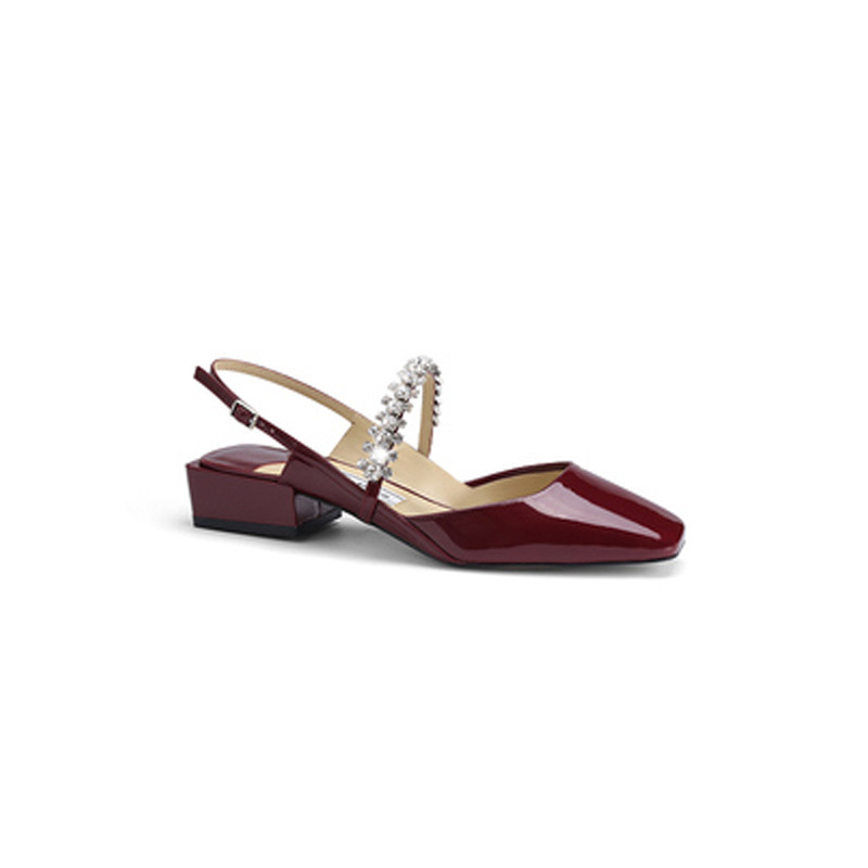 夏季新款韩版时尚水钻包头后空凉鞋女方头粗跟玛丽珍凉鞋女