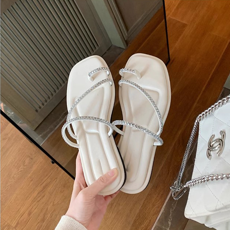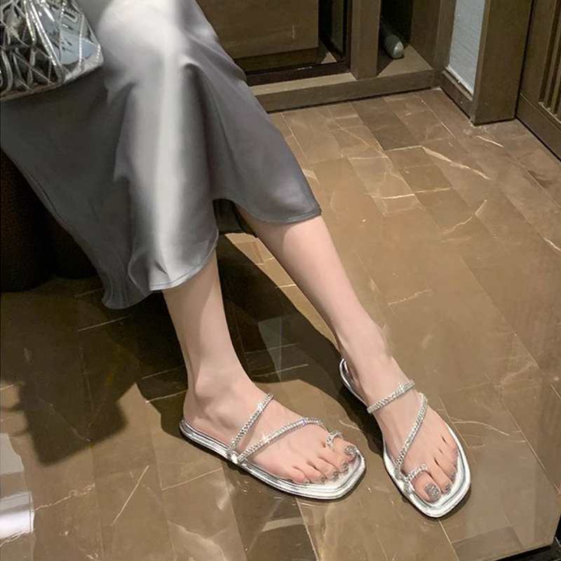 闪闪水钻套趾精致仙女风平底凉拖鞋女夏季新款外穿拖鞋女
