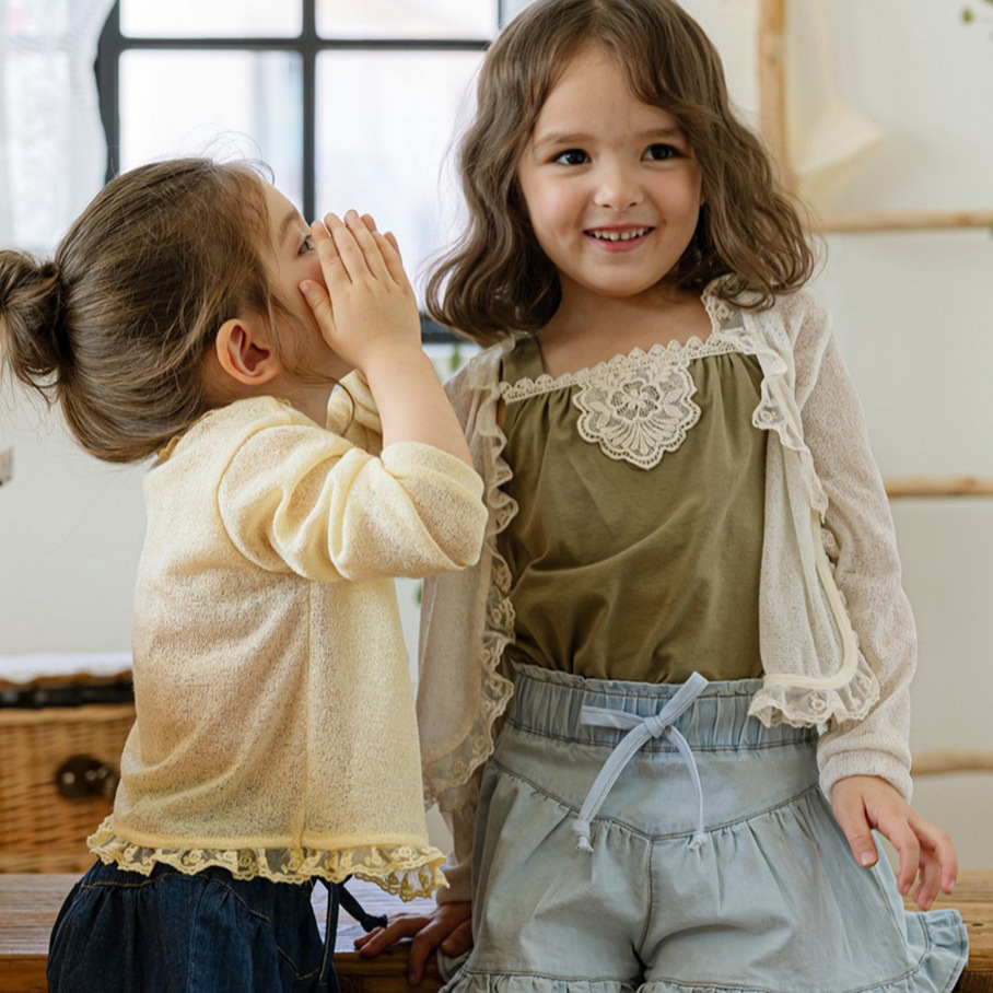 夏款草莓珊女孩蕾丝菲边3色甜美空调衫防晒衫