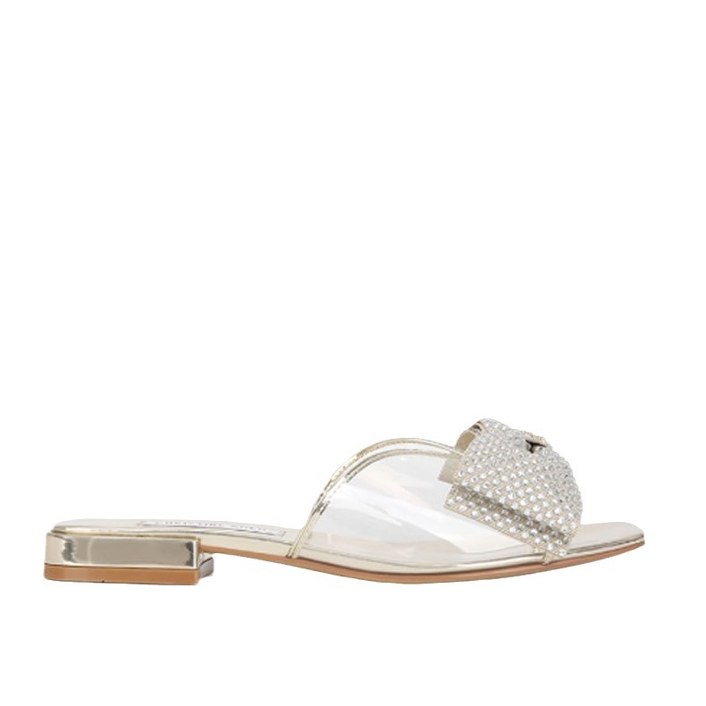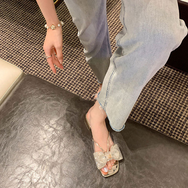欧美方头透明pvc水钻蝴蝶结平底拖鞋女凉拖