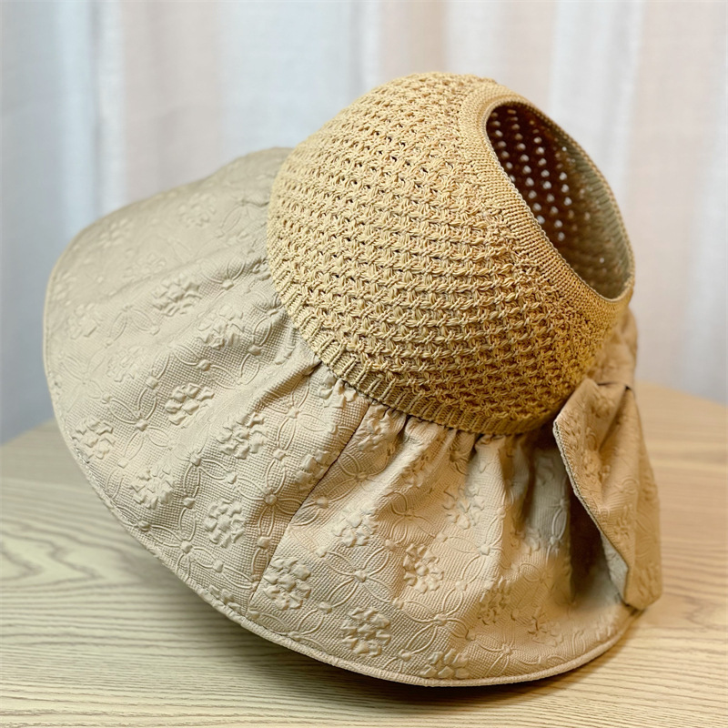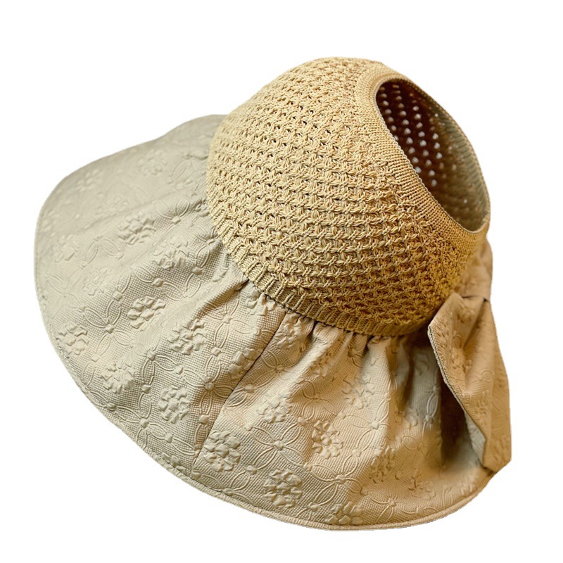 防晒帽子女夏季新款防紫外线空顶遮阳帽日系大檐扎马尾遮脸太阳帽