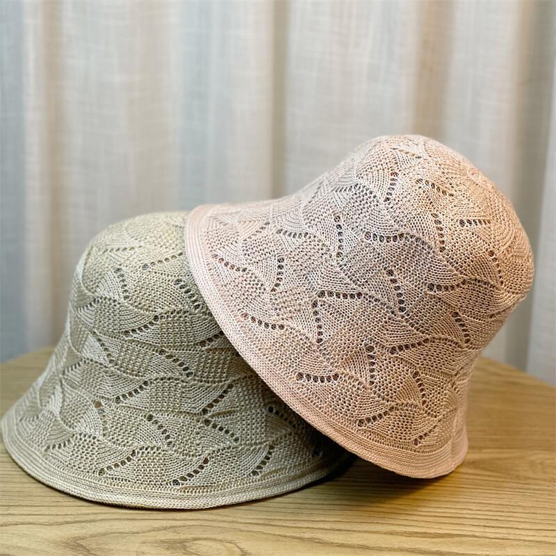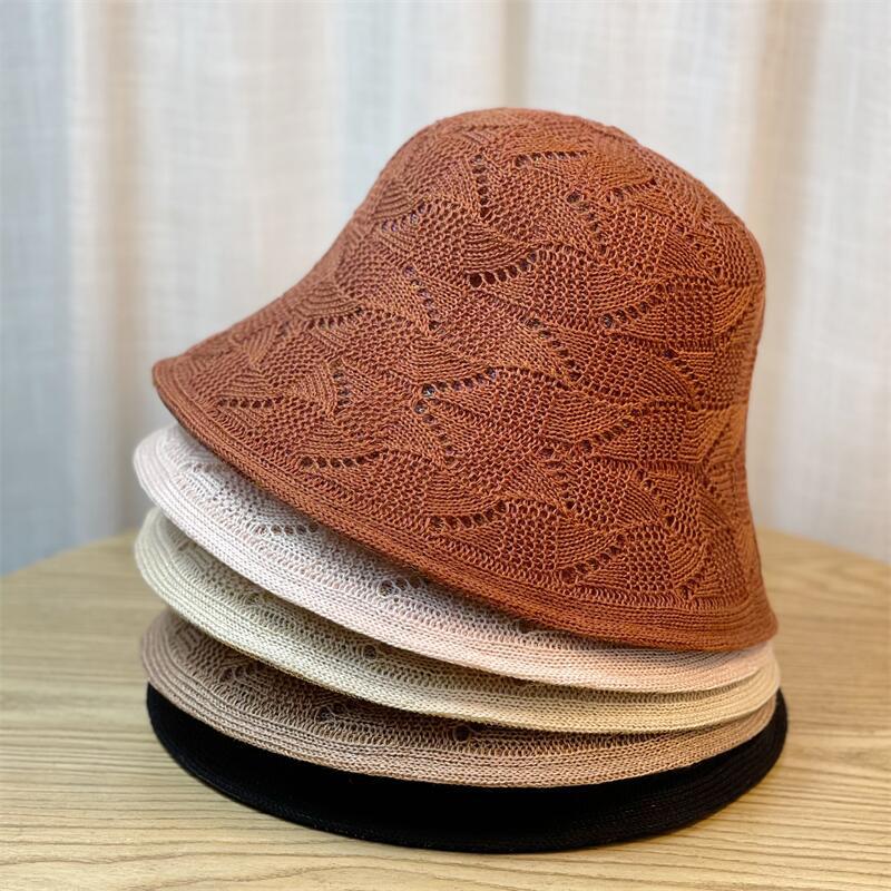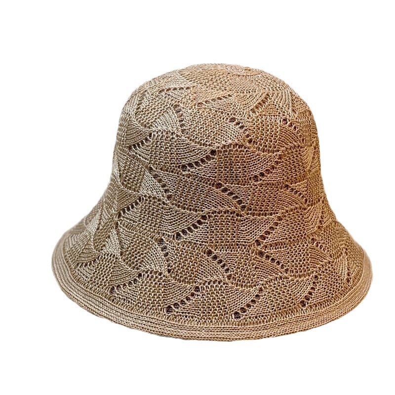 双面带夏季新款女士镂空遮阳渔夫帽简约日系显脸小出游针织水桶帽