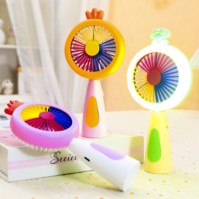 网红多巴胺拼色手持灯光充电usb风扇 学生卡通桌面二档风扇
