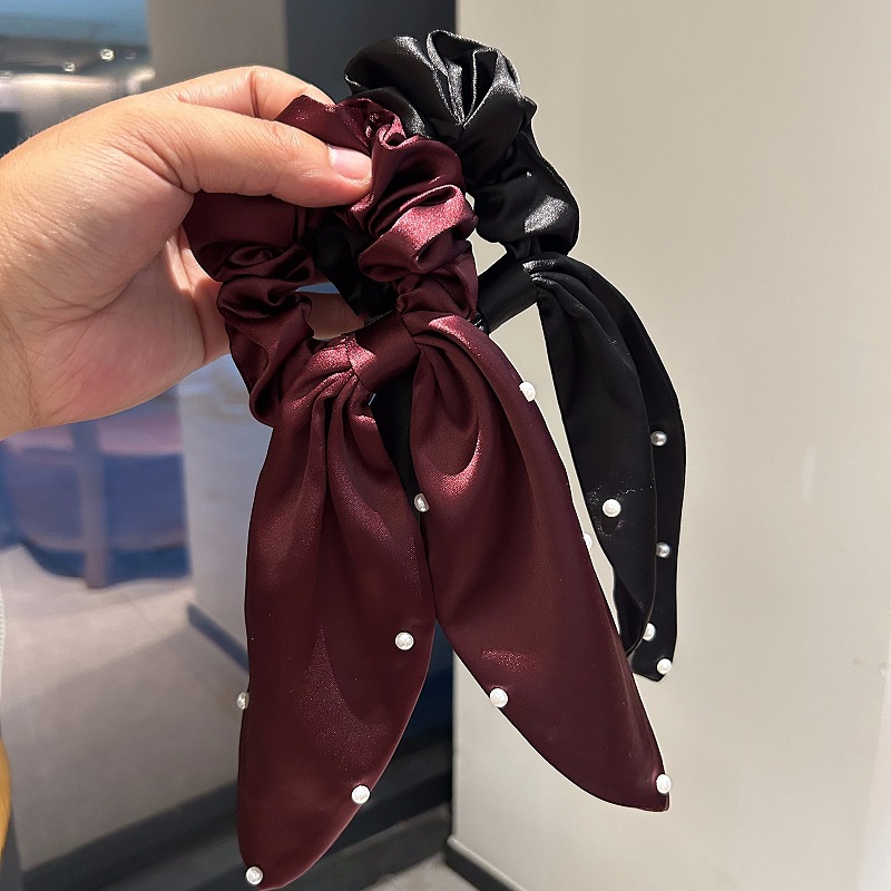 飘带缎面珍珠发圈头饰发绳气质发饰后脑勺盘发头绳韩国发带大肠圈
