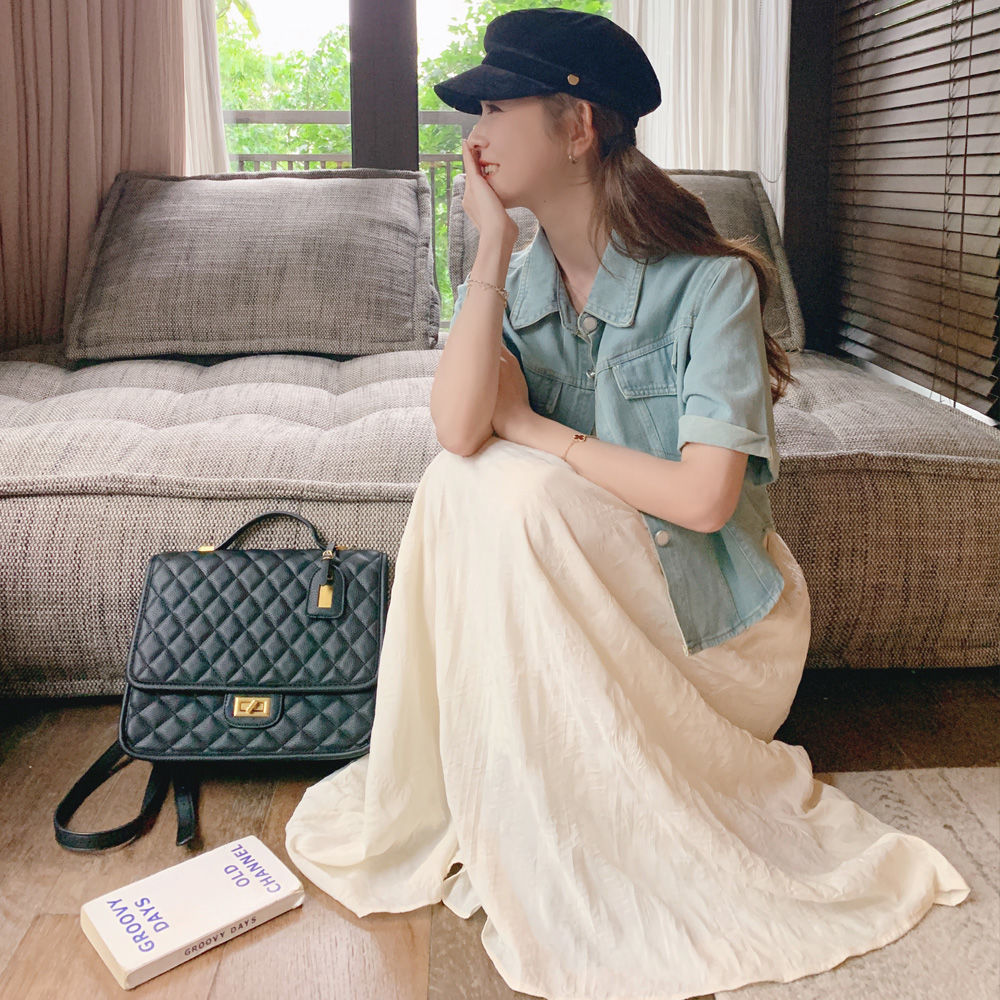 复古牛仔外套白色吊带连衣裙两件套女夏季今年流行漂亮套装裙