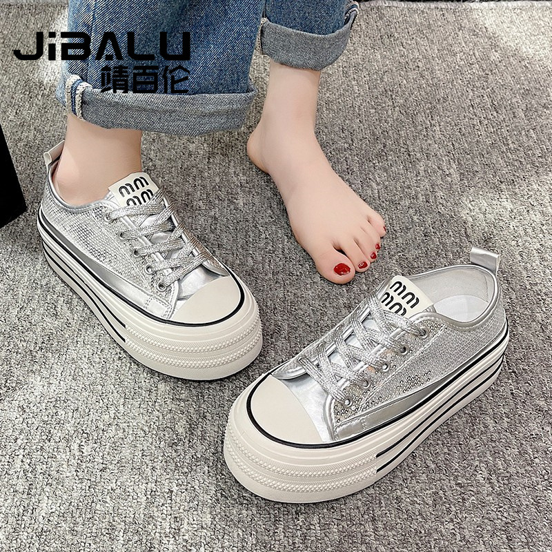 银色休闲鞋女新款韩版春运动女鞋厚底松糕鞋学生小白鞋帆布鞋