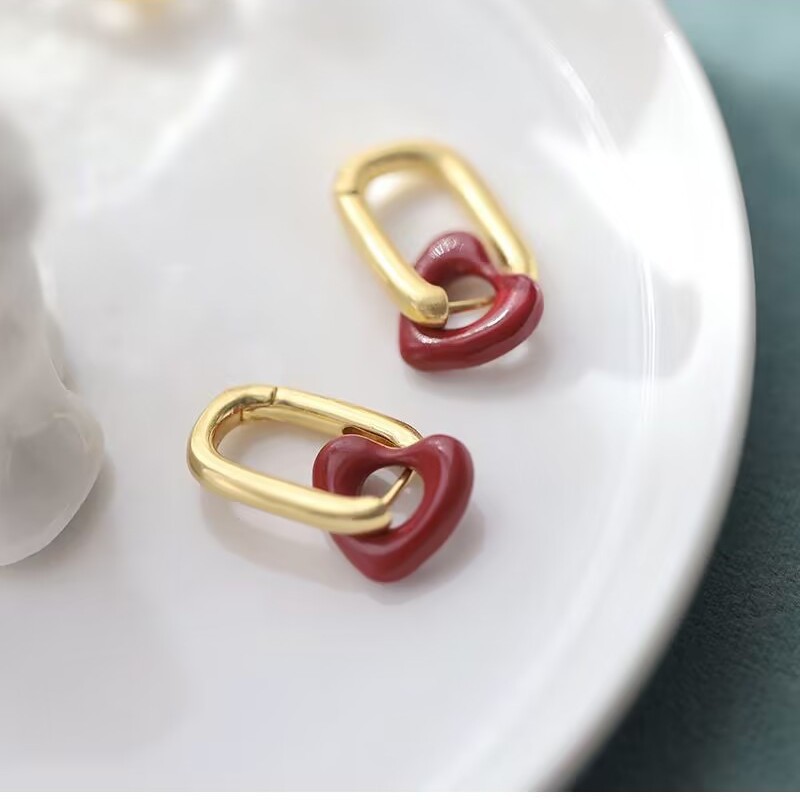 莫斯科红场」复古法式耳扣气质高级感耳饰几何百搭红色爱心耳环女