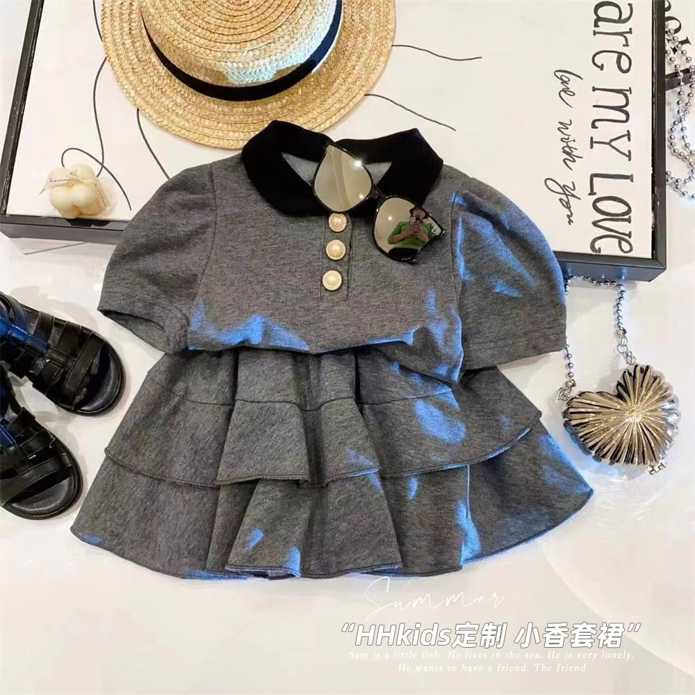 新品女童学院风Polo领泡泡袖T恤蛋糕短裙两件套2025夏装套装服装