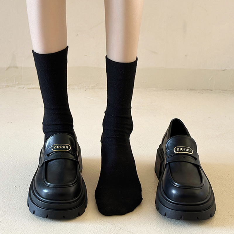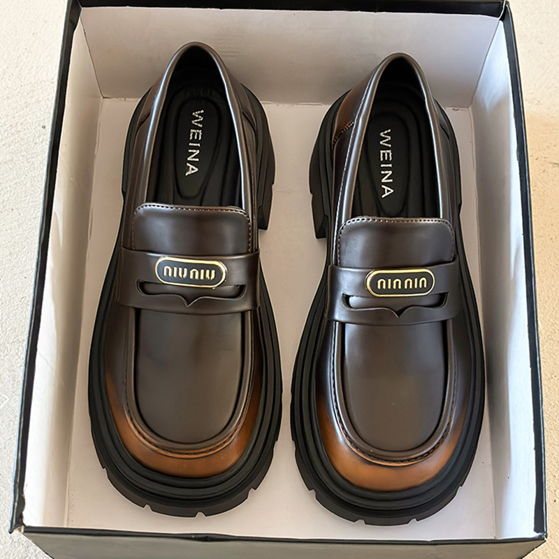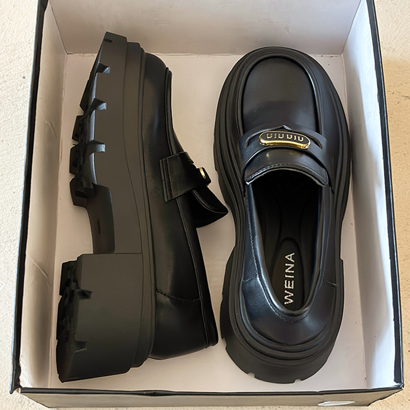 真皮小个子厚底松糕乐福鞋女春季新款百搭粗跟小皮鞋学生单鞋