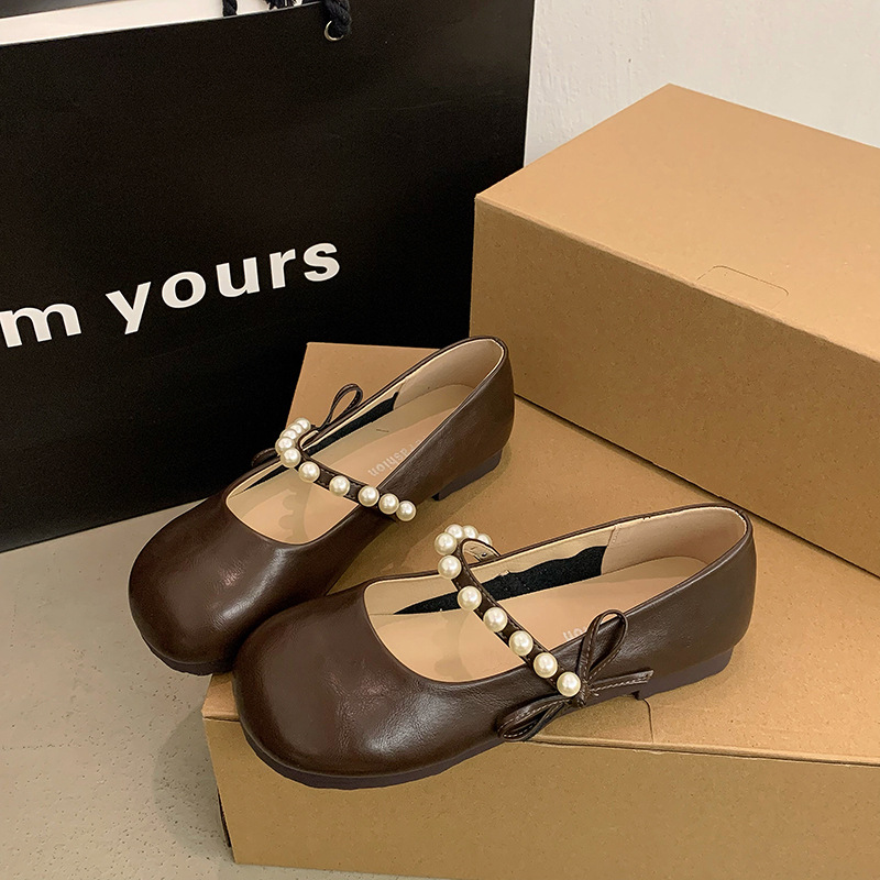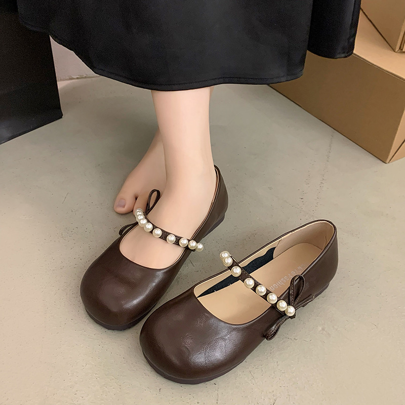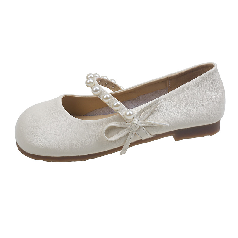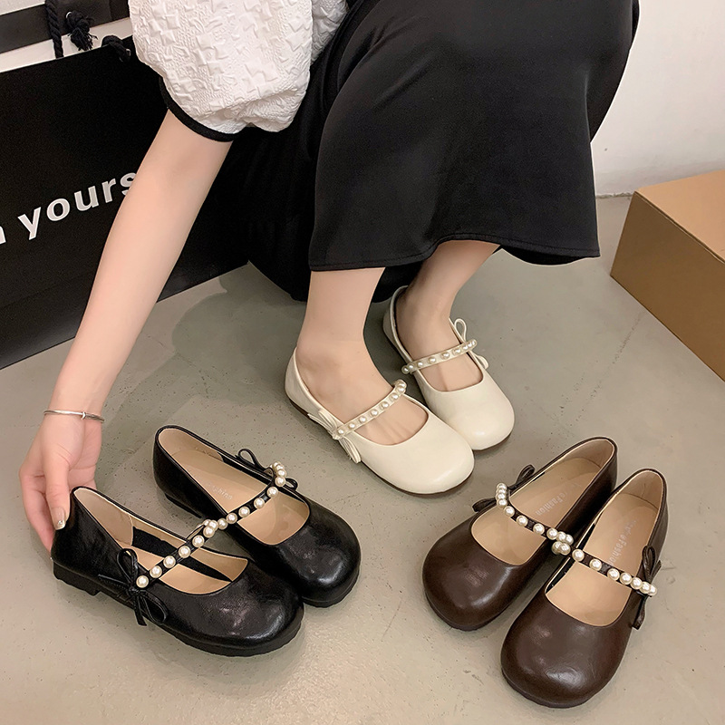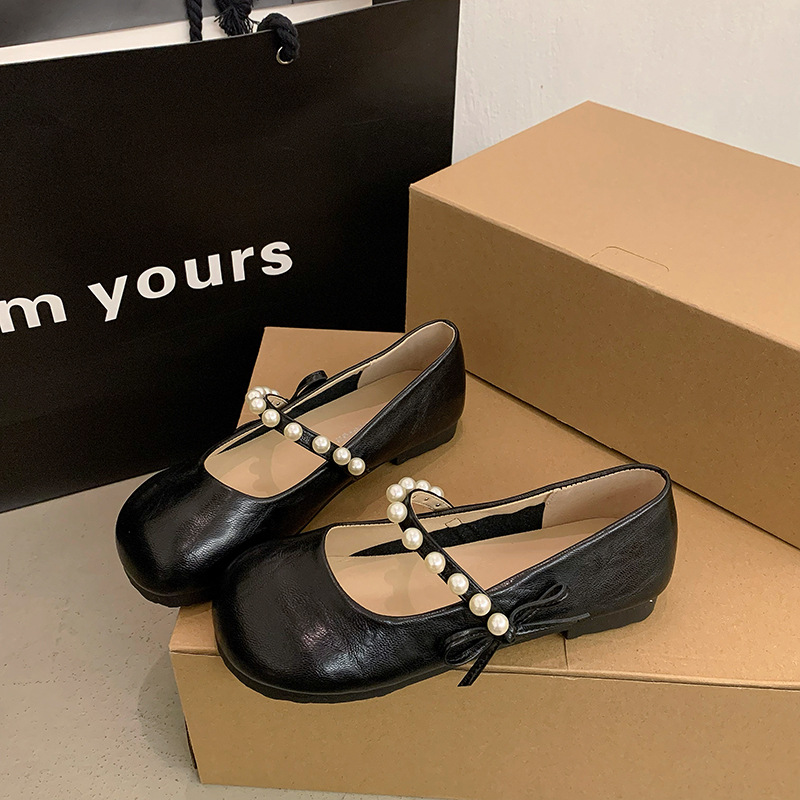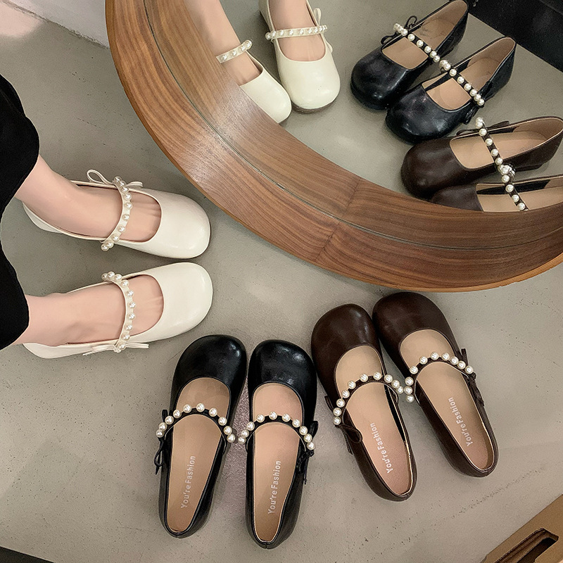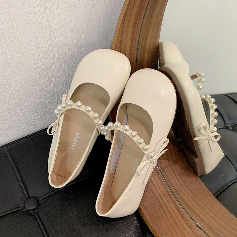 法式珍珠平底玛丽珍单鞋女年夏季新款百搭仙女风配裙子豆豆鞋